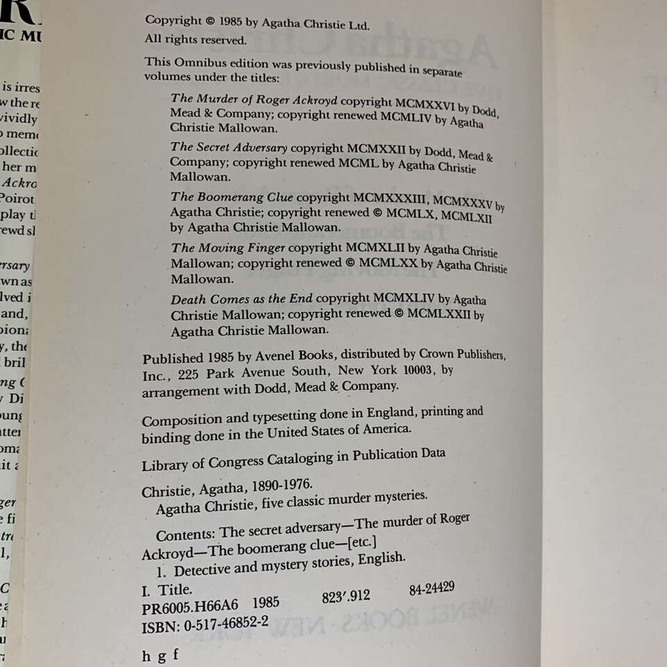 VenmoAgatha Christie - Five Classic Mysteries with hardcover with dust jacket very good condition. Message me if you’re interested in purchasing.