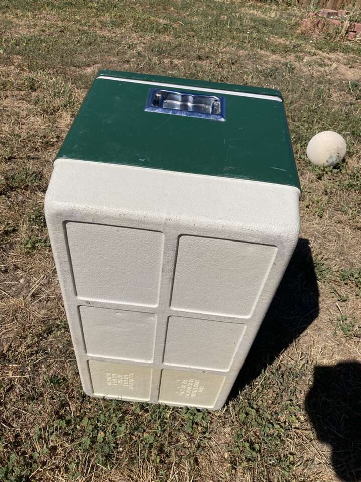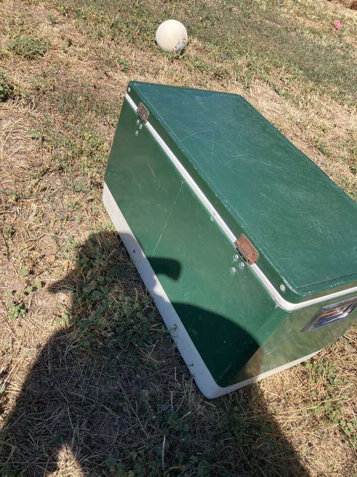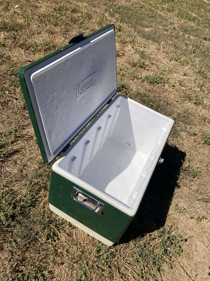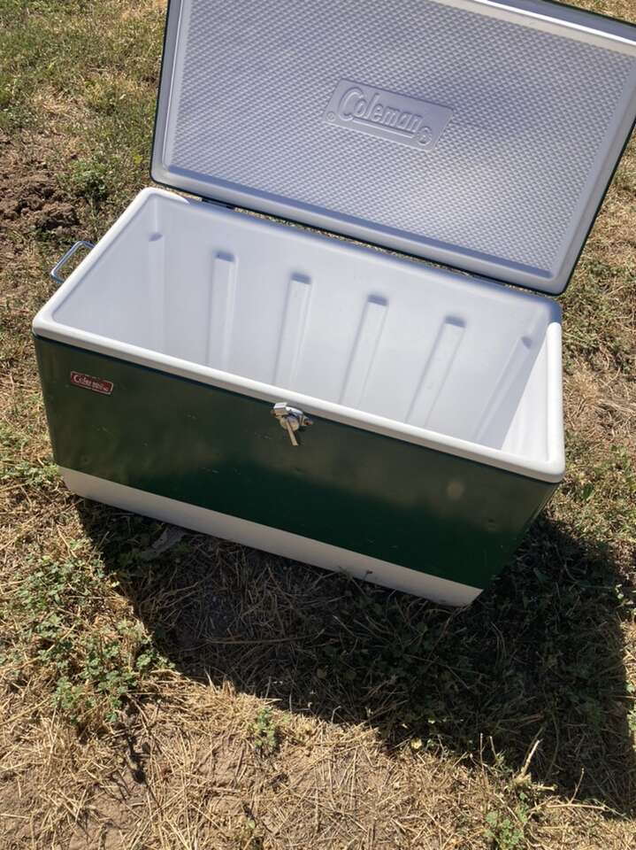 Rare king extra large vintage coleman steel belted cooler