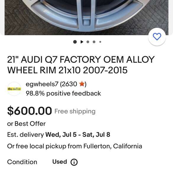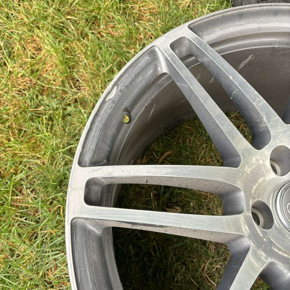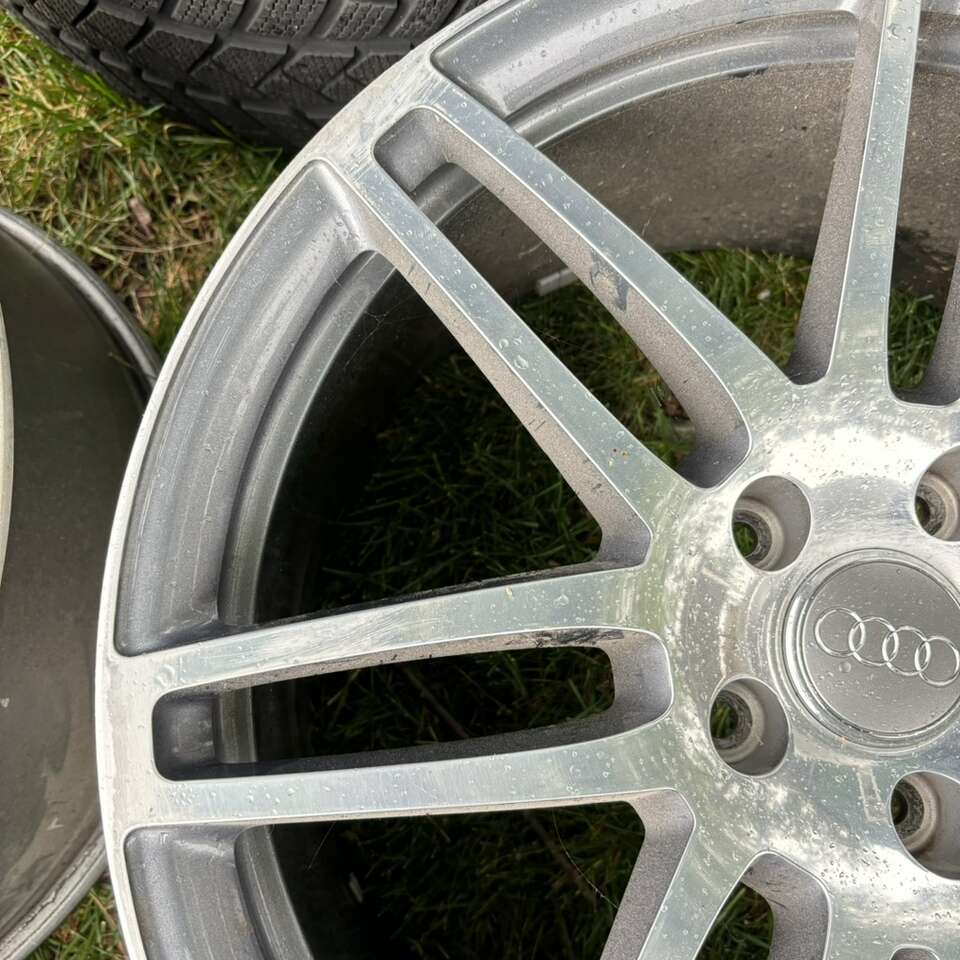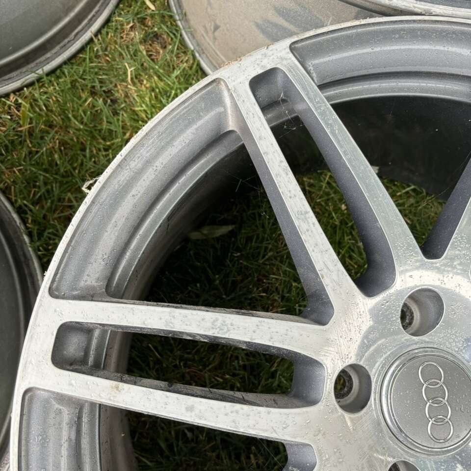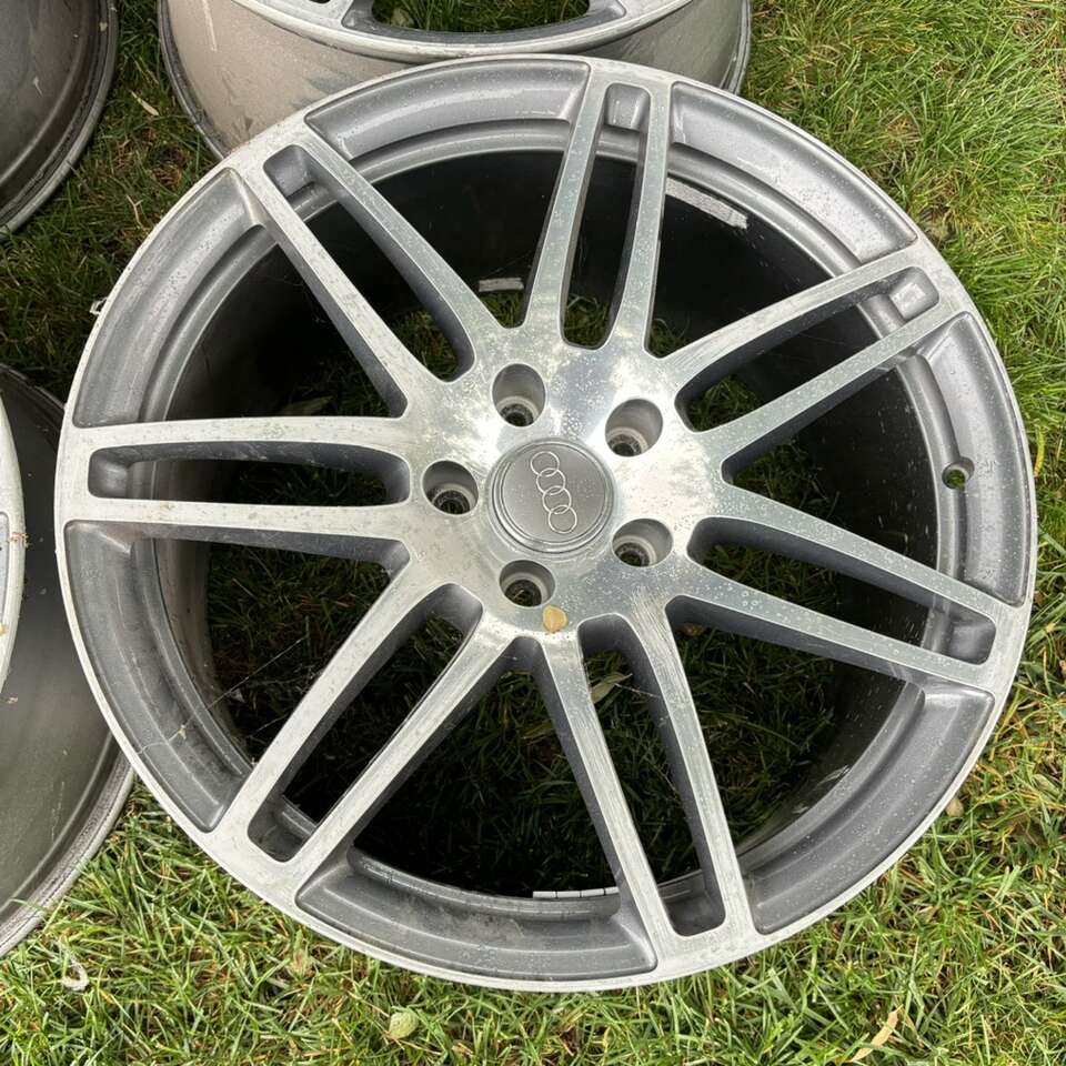 The wheels are made of high-quality aluminum and have a beautiful anthracite/diamond cut finish. Some of lip is faded. A few spokes fine sanded. Never driven in snow or salt. No dents. Great physical condition. OEM Factory for 2007 - 2015 Audi Q7 with the 5x130 bolt pattern.