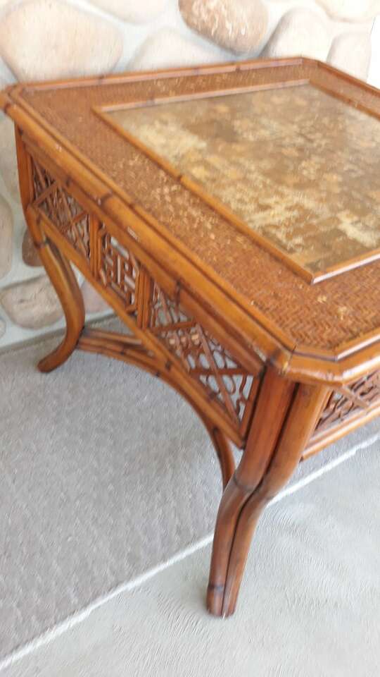Very nice unique table. Solid and quality, shabby top. 32" x 32" and 26" tall. $200 firm