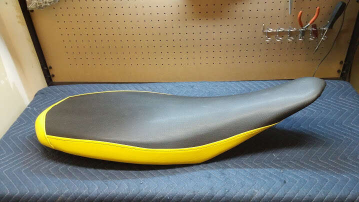 Seat for early Polaris Scrambler, Sport and Trailblazer. Price includes recovering it in your choice of color(s). The first two pictures are a seat i've done in the past and not the actual seat for sale. It is the correct model.
