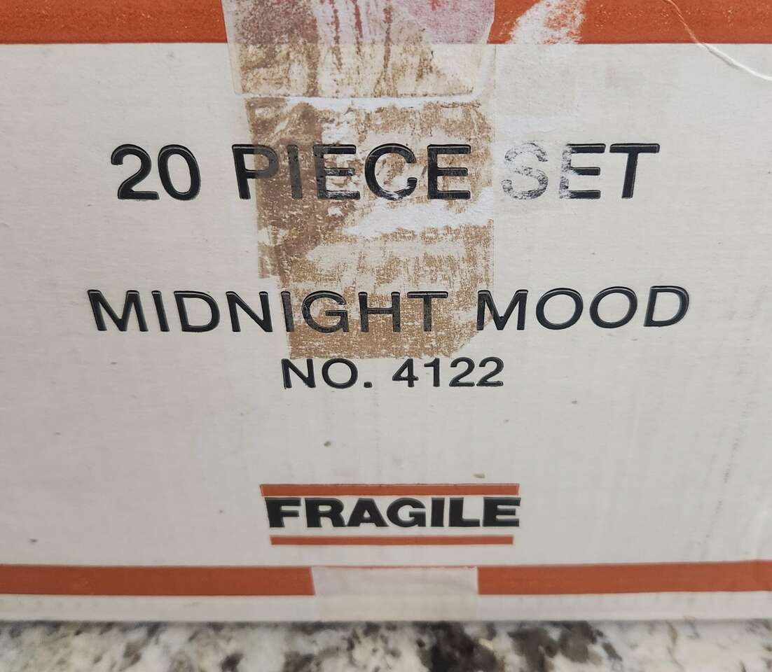 VenmoTHIS LISTING IS FOR A 20 PIECE SET OF VINTAGE 1982 ROYAL PRESTIGE "MIDNIGHT MOOD" #4122 FINE CHINA NEW IN THE BOX. IT HAS ITS ORIGINAL SHIPPING INFO FROM 1982 ON THE BOX, AND HAS NEVER BEEN UNWRAPPED OR USED.