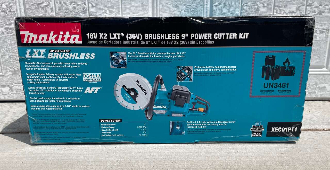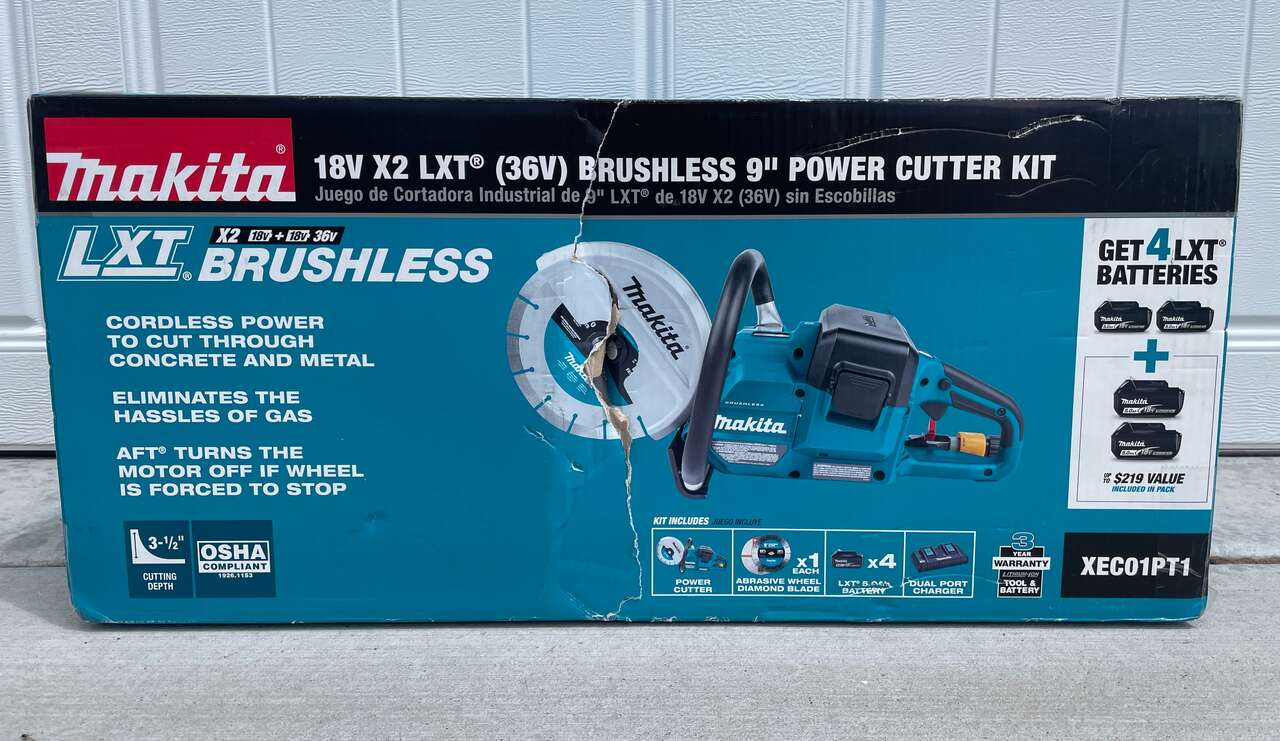 Up for grabs is a NEW & SEALED Makita 18V X2 (36V) LXT Brushless Cordless 9" Power Cutter Kit w/ 4 5AH Batteries.