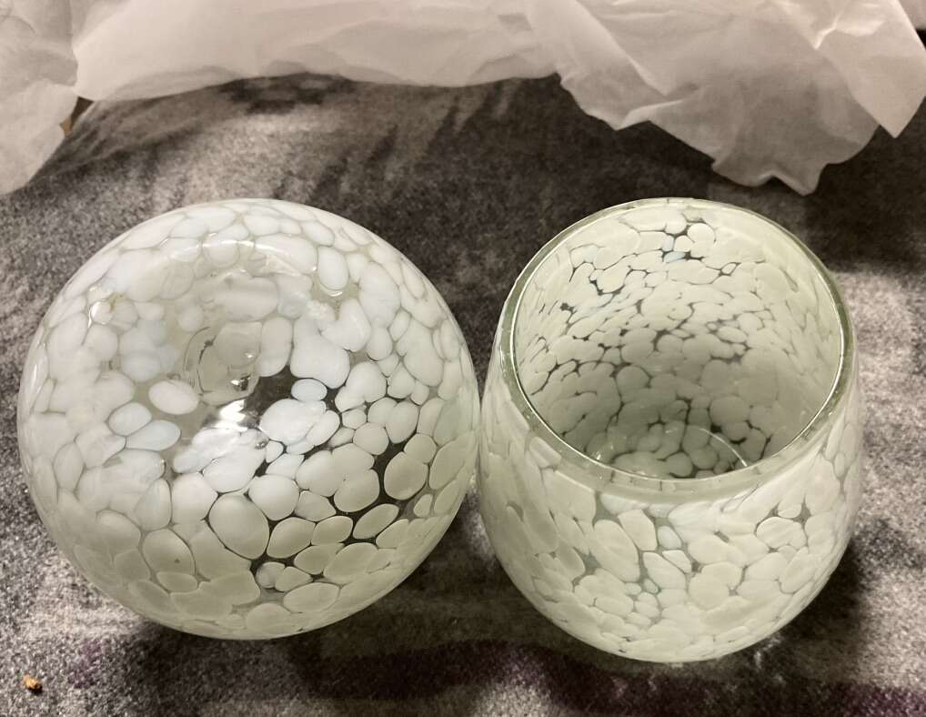 This vintage low ball glass is a beautiful piece of art that will surely catch the eye of any collector. The unique crackle confetti marbling and speckling of the glass is a testament to the craftsmanship of the hand-blown process. It is perfect for use in the home or as a decorative piece.