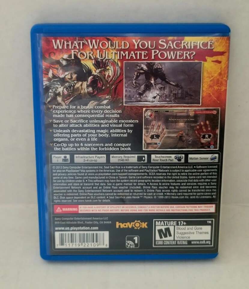 Soul Sacrifice PS Vita Complete in Box CIB + Authentic Tested. Inf 702 3558824