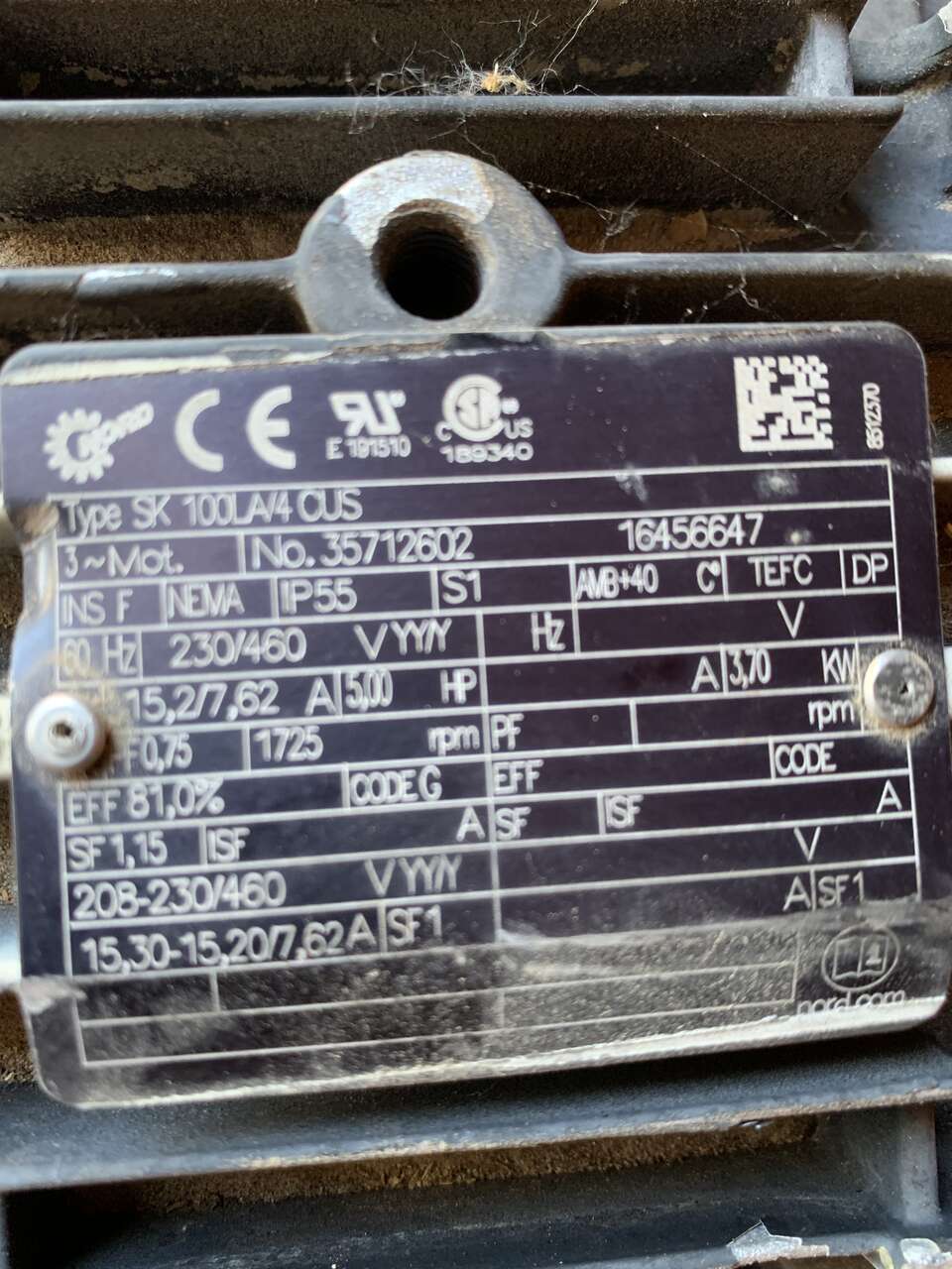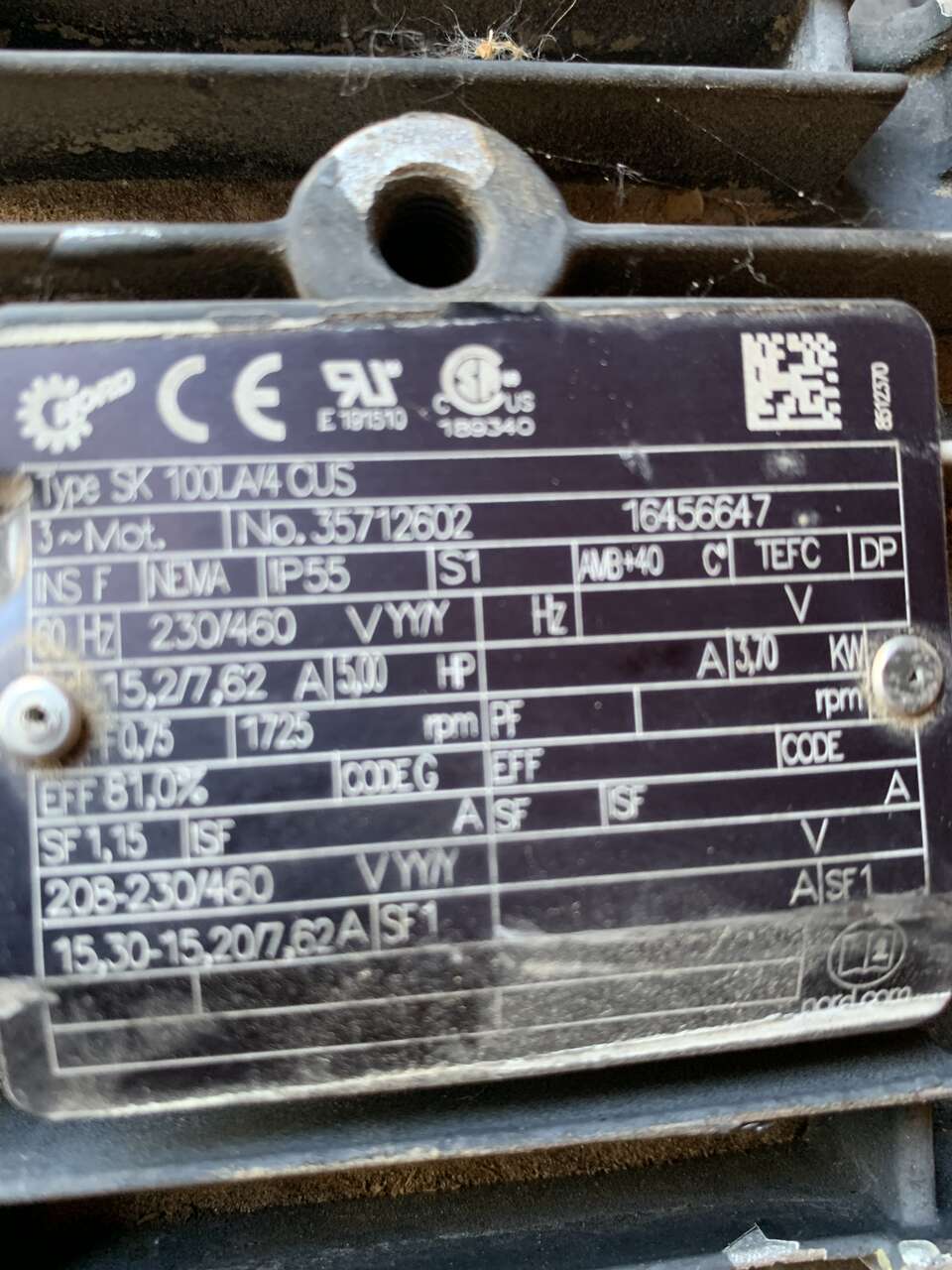 5 horse Inverter duty motor, 3 phase, Used as is, Can deliver certain areas