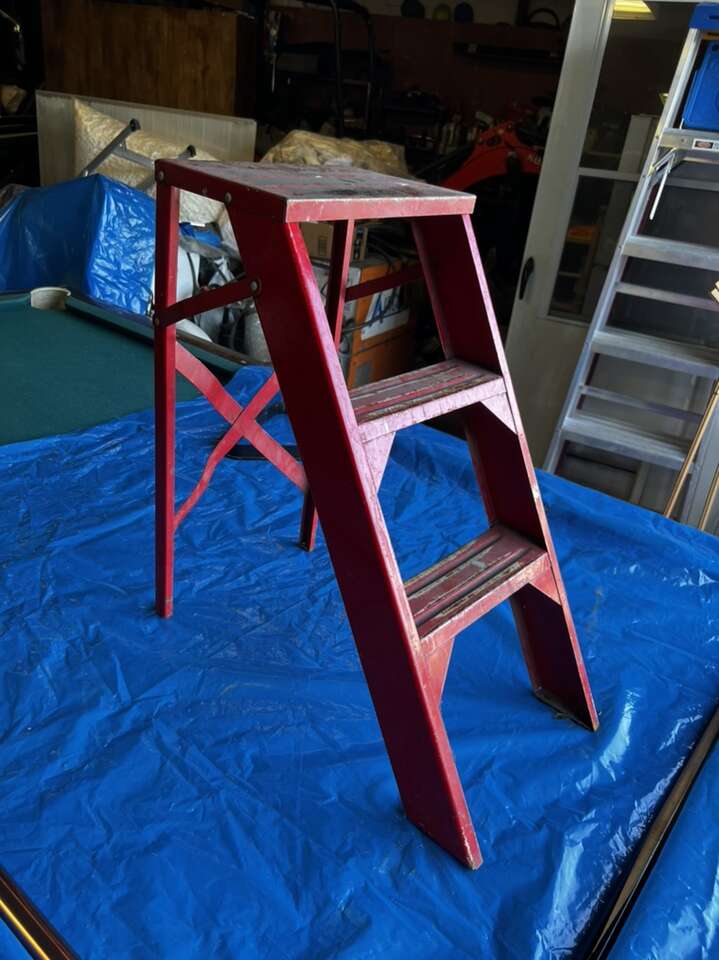 Vintage stepladder red paint original paint beautiful patina 24 inches tall 22 inches front to back 12 inches wide