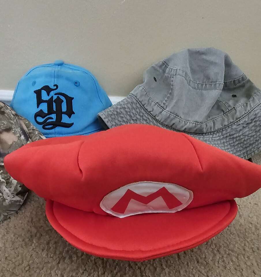 Hats still available are: black hat with flower bill design Mario hat fishing floppy hat desert shadow camo hat git r done hat all others are sold Buy one for $2 or all for $8