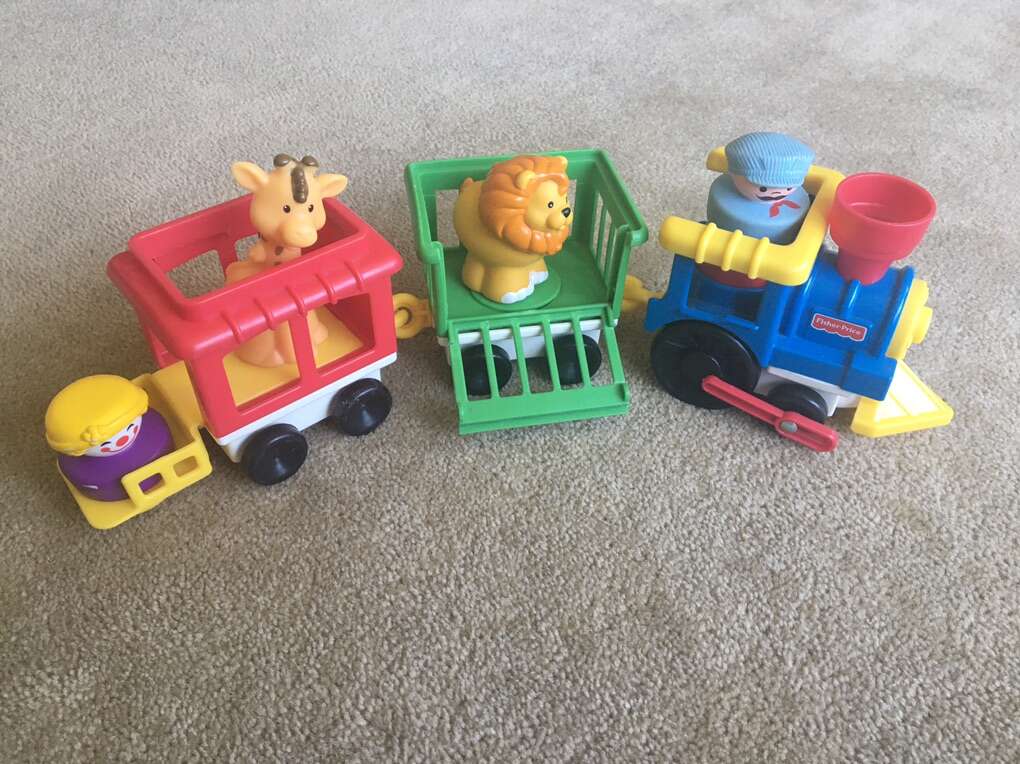 Vintage 1991 Fisher-Price Chunky Little People Circus Zoo Train. Includes 3 detachable train cars, 2 animals, and 2 original chunky figures (engineer and clown). All in very good condition. Text only. Cash or Venmo.