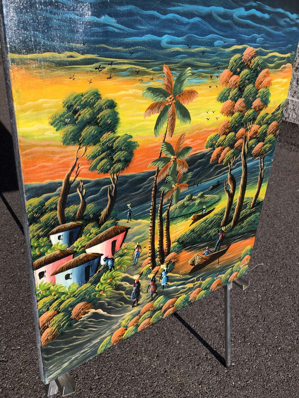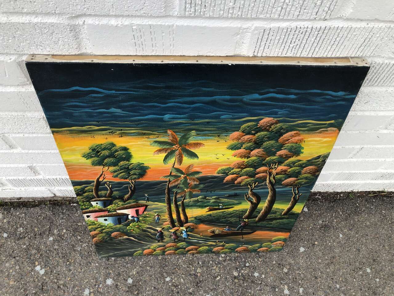 Beautiful original vintage oil painting tropical, tiki, island traveler beach vibe The colors and artistry are fantastic!! It's approx 24"t x 20" w