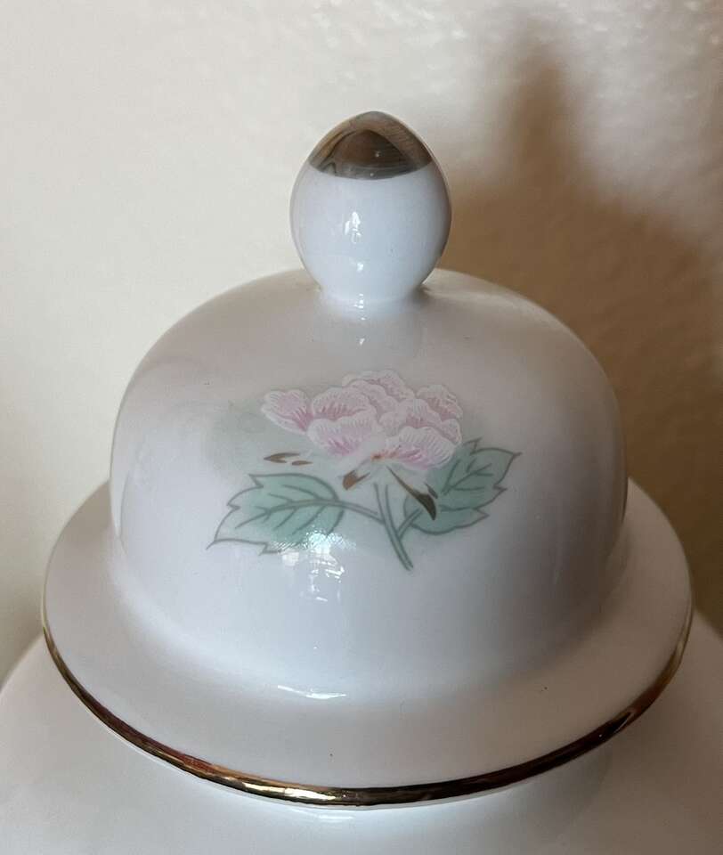 Venmo8” tall Peonies (Pink and Yellow) white porcelain Vase with lid/Home or Office Decor. Great addition to any Japanese porcelain collection/ home or office decor. $12