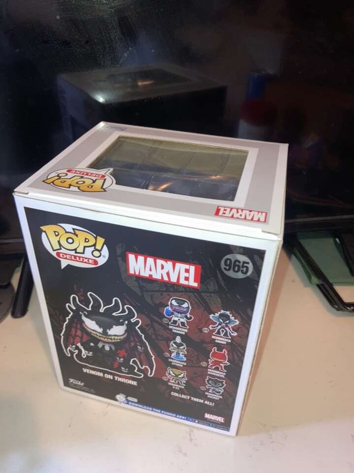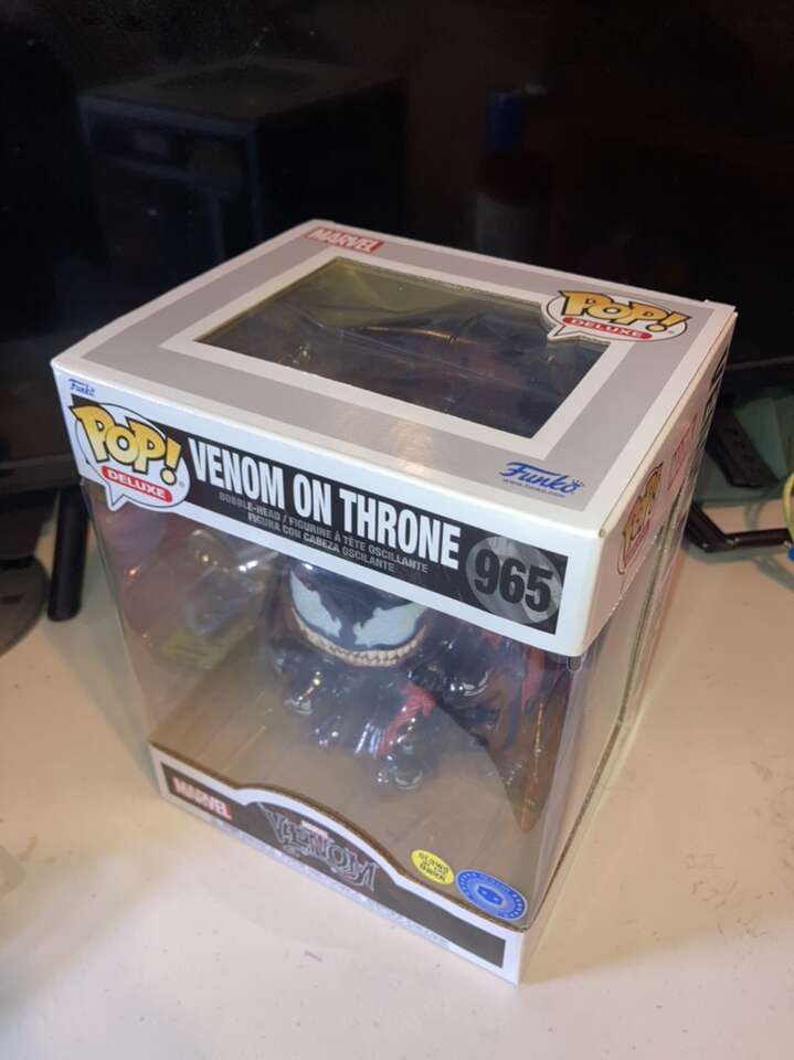 Venom on Throne Marvel DC Funko Pop Pop in a Box Exclusive brand new in the box. Glows in the dark. Box is in excellent condition. A bit larger than the standard Funko. Messages and text only please.