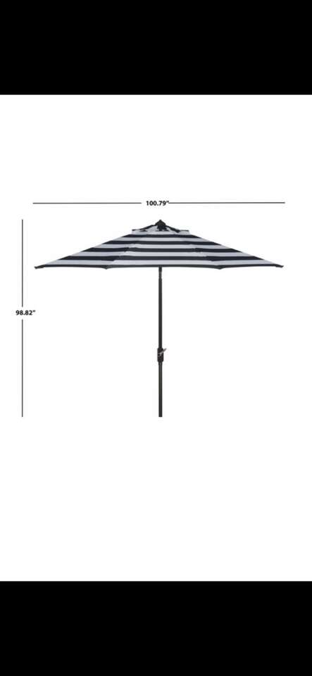 Product Details Category: Umbrellas Color: Black / White Finish and Surface Treatments: Powder Coating Contents: Metal Fabric: 100% Polyester Metal Color: Brown Metal Type: Aluminum Dimensions (W * D * H): Open:100.79 X 100.79 X 98.82 Close:6.1 X 6.1 X 98.82 Weight: 12.1 lbs.