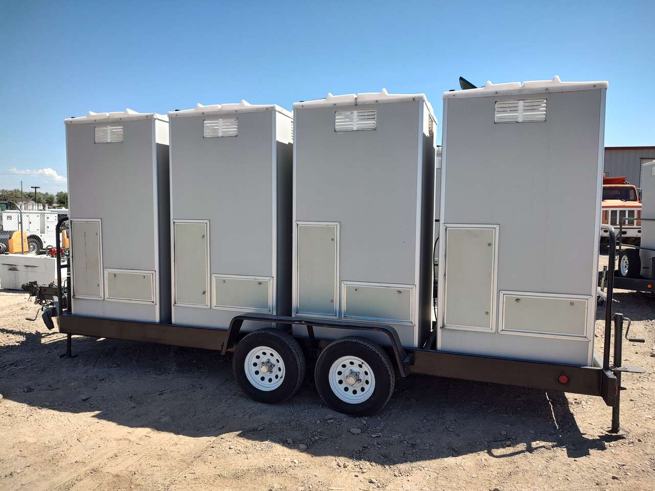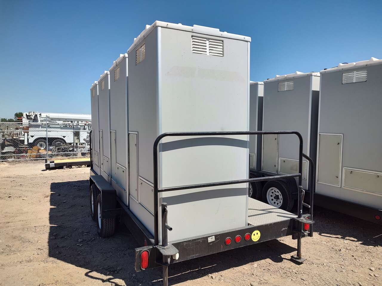 2008 four stall portable restroom trailer, all self contained, each stall has it's own 40 gallon fresh water tank, sink, battery and charger, black water tank. Great for weddings, birthdays, family reunions, or any party 208-734-3434