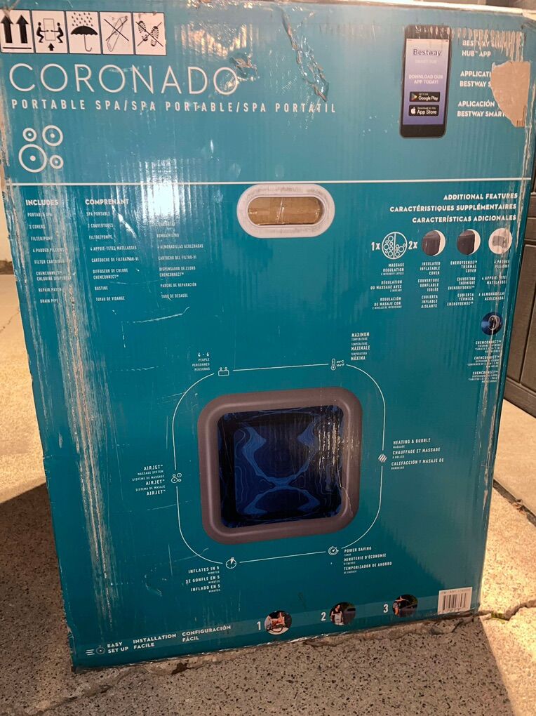 New Inflatable Spa / Hot Tub With Cover Fits 4-6 people Bestway Coronado