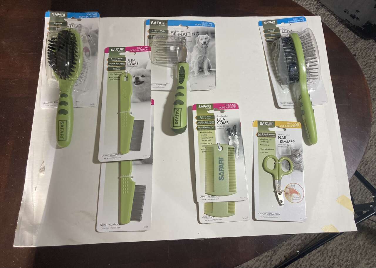 Item# 729 Flea Comb W577 $5.00 Item# 730 Flea Comb W577 $5.00 Item# 731 De-matting comb W6116 $15.00 Item# 732 Brush W6151 $15.00 Item# 733 Brush W6151 $15.00 Item# 735 Double sided flea comb W6170 $8.00 Item# 736 Double sided flea comb W6170 $8.00