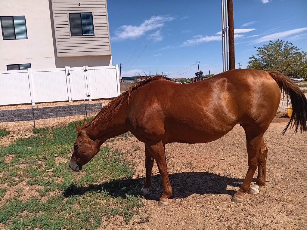 Tothemoonanback *****Turned her in with Strawfly Royal for a 2026 foal...( aprox may foal) 6 panel nn 55.17 % foundation QH 2008 Apex Reg AQHA 15 hh Pic with her 2023 colt @ 2 days old..He is almost 16 hh now a gelding And her 2024 filly @ 1 day old she is 15 hh now... Her maternal mother was a ROM producer of ROM producers Goes back to Three Bars 5 X, War Chic ( o/o Chicado V ), Skipper W 3 X, Native Dancer, Nick 10 X, Peter Mc Cue 10 times . Top Deck,Texas Lad, Depth Charge, Peter McCue, Leo, Vandy, Man O War 3X, and Fair Play 3 X Great mix of race and rodeo Was broke to ride at 2 than sent to track at 3 but trainer didn't work out so brought home and turned out in 2014 Gentle, trim, load and Broke to ride but selling as broodmare only 2021 filly, 2023 Colt and 2024 filly ( pic) All foals by Strawfly Royal.. Foaling in pasture no problems.. Looking for a good home.. 2024 filly will be looking for a performance home also..mix Mom and Dads breeding together and you have a great horse.. LOCATED IN So Utah pic is her father Bassa Ventra