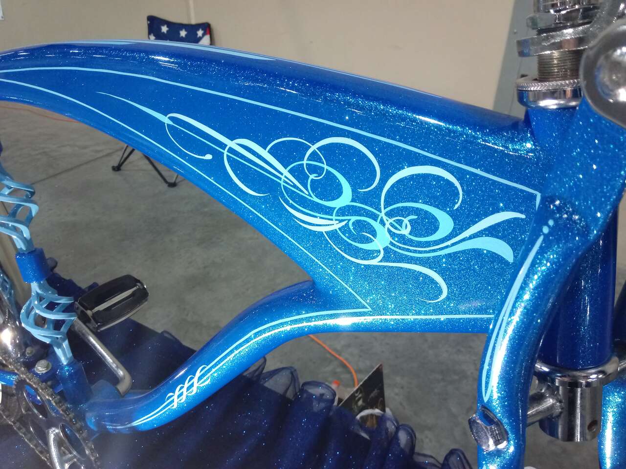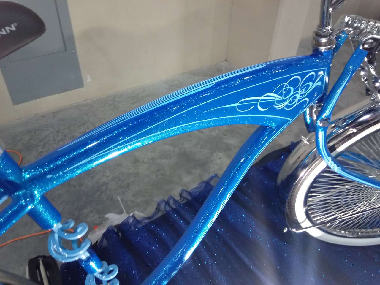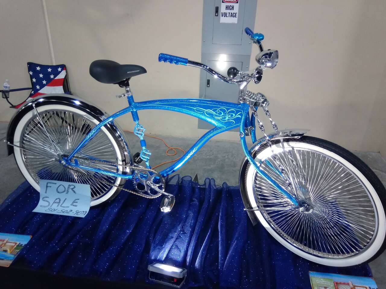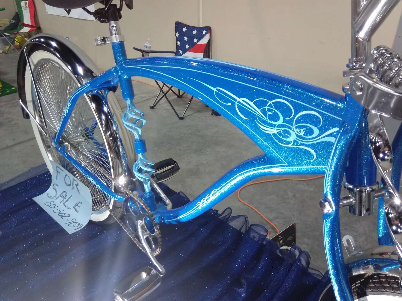 PayPalCustom built 26" inch beach cruiser lowrider chopper style bicycle bike with custom welding and fabrication . Everything on this bike is brand new and never used including 144 spoke wire wheels. The frame is custom built and features a full molded steel tank and 2 custom bird cages in the center post. This bike does need finishing work and paint but is easily a show bike when finished. The only reason I'm selling or trading this bike is because I have a project car that is a priority for me at the moment. Thanks again for your time and also open to reasonable trades or partial trades.