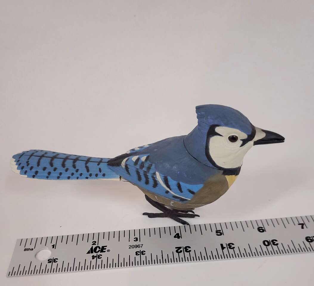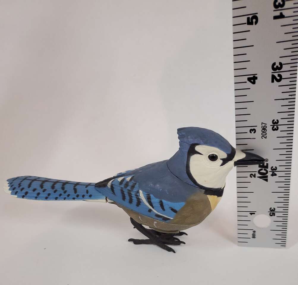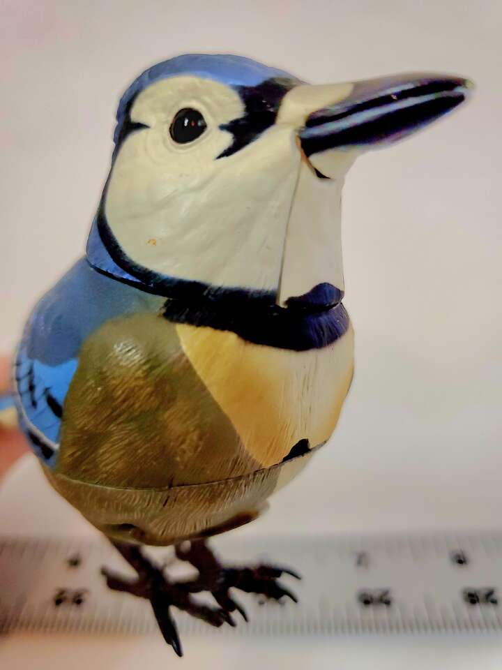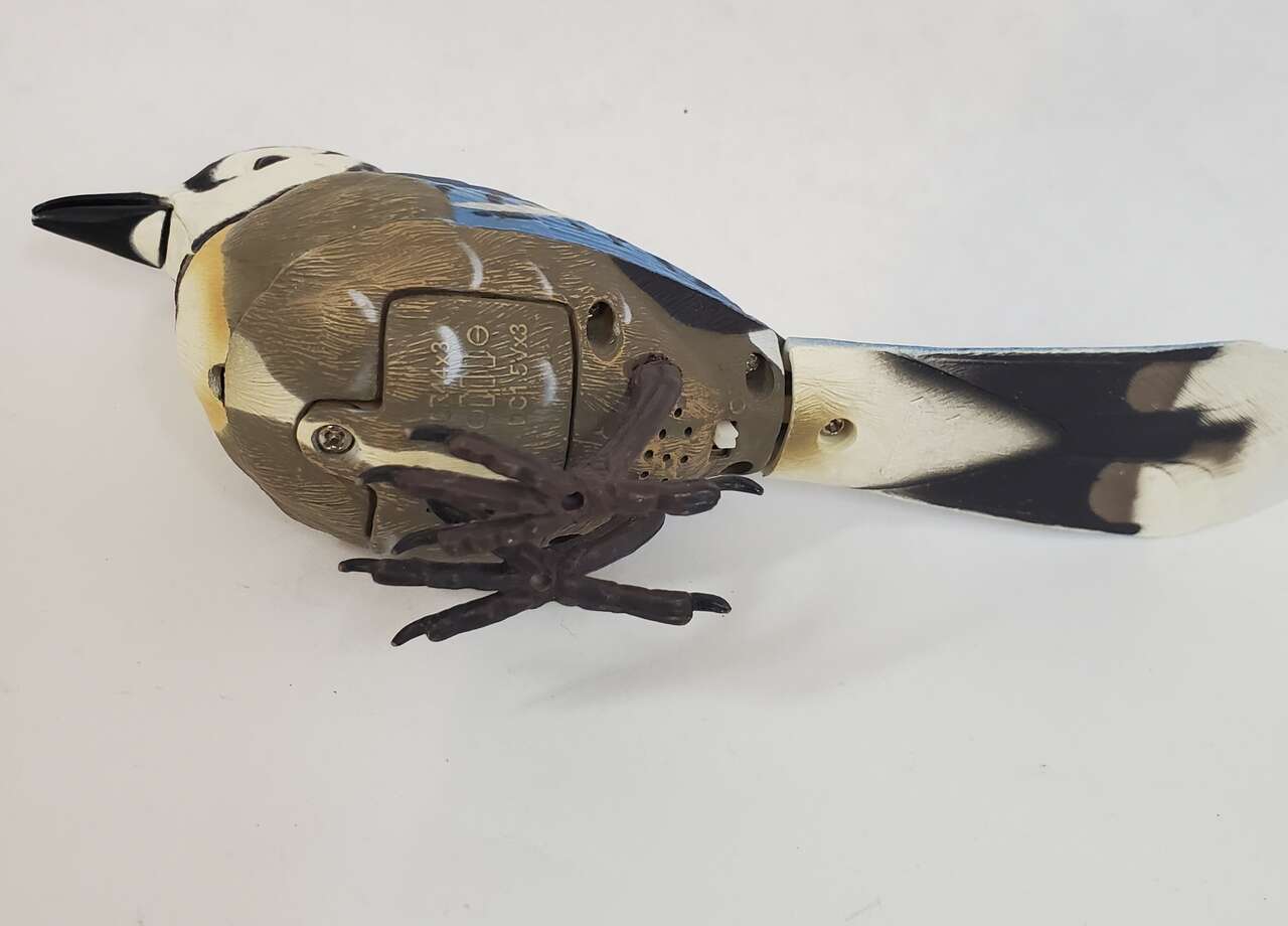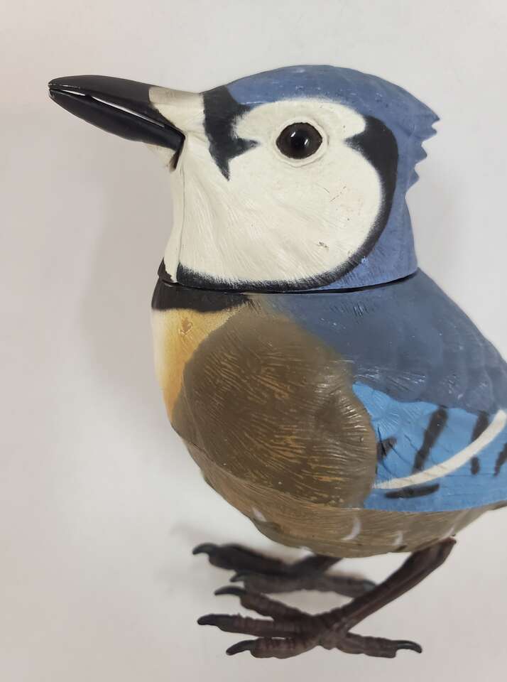 Breezy Singers Blue Jay Bird Motion Activated Photo Sensor with Realistic Tail, Neck and Beak Movements. Genuine Birdsongs when Activated. With On and off switch. 3 L1154 batteries included. Used Condition. Cash Only, No Codes.