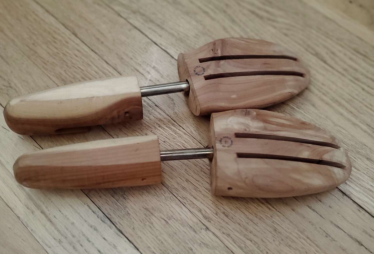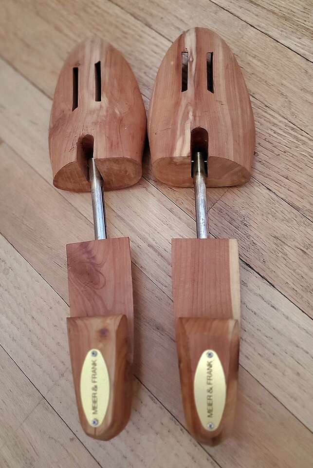 Myer & Frank Cedar Shoe Tree for Men/Women 1 Pair. Made in the USA. Shoe Care Protecting Against Moisture, Preserves Shape, Leather, Fabric, Stitching. Spring Loaded to Fit all Shoe Types. Cash Only, No Codes.