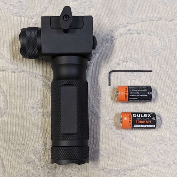 All metal construction grip with a flashlight built in of super bright 220 Lumen LED Bulb.