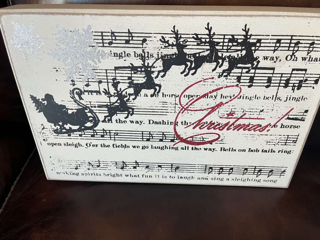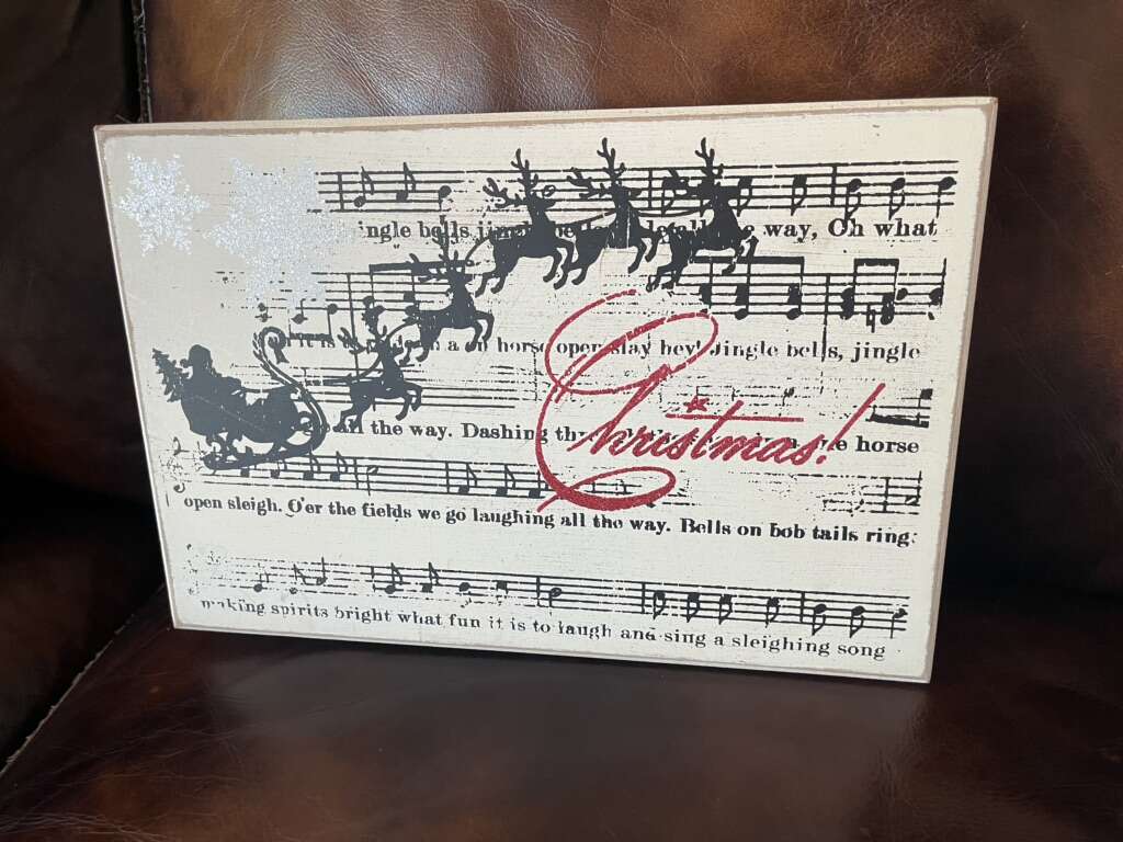 Christmas Jingle Bells sign 12 by 8 by 1.5