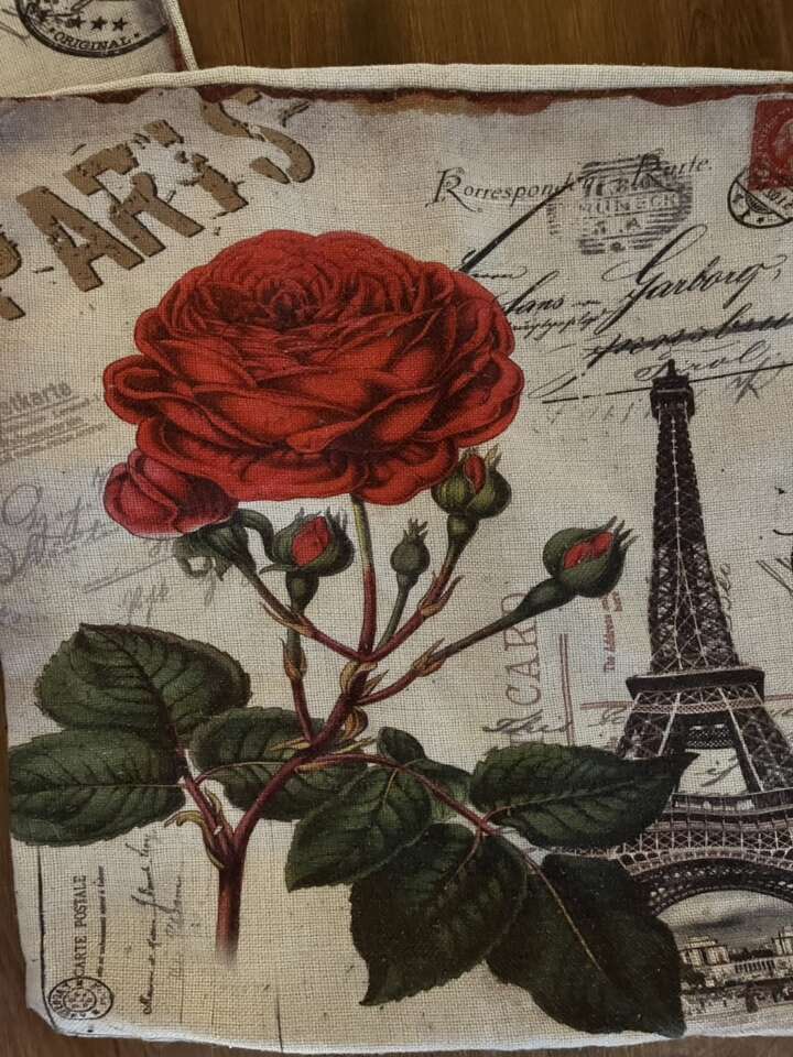 Set of 2 toss pillow covers Paris Eiffel Tower rose burlap style 17 X 17