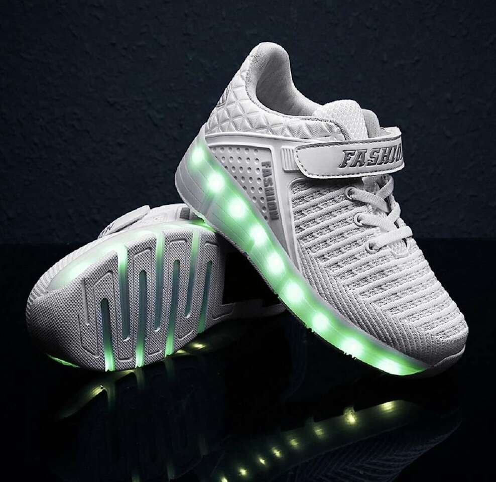 About this Item EXCELLENT MATERIAL: Mesh PU leather design,TPR sole,Comfortable and soft,wear-resistant and fold-resistant,care for the health of both feet. HIGH-QUALITY: The sole is irregularly arranged to increase the ground friction of the shoe,waterproof LED for kids to have fun and also keep safe. 11 LED MODES: Includes USB Charge Cable,The switch and charging interface on the inside of the Shoes.