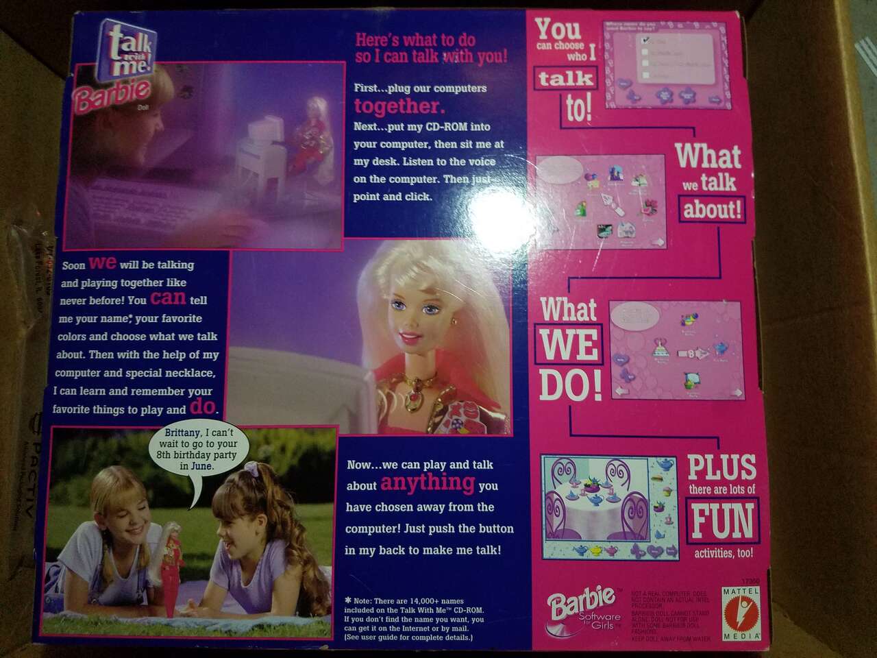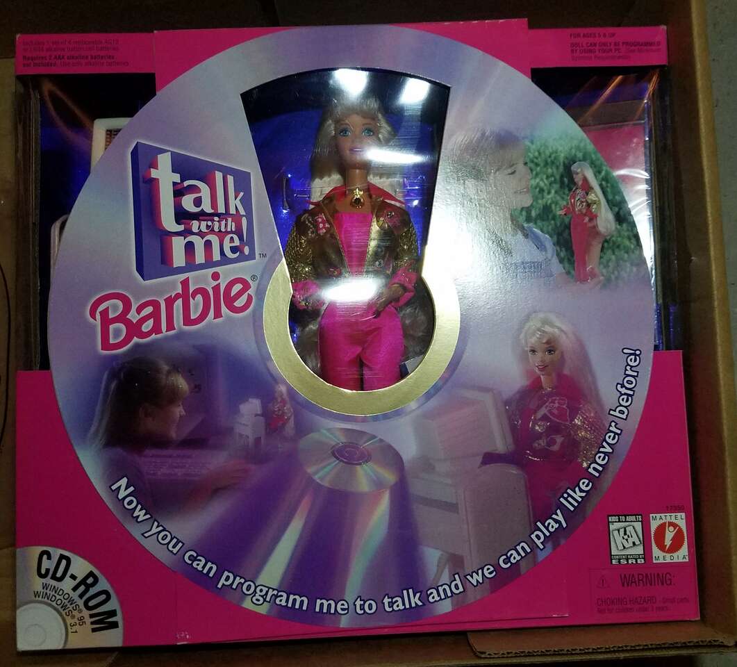 Vintage Barbie NIB Her mouth really moves. She has her own computer, desk and chair. Comes with a CD. “Now you can program me to talk and we can play like never before!” CD 1P452223 REC: R1723898067, WH: A5, P: 000000080324 CASH only
