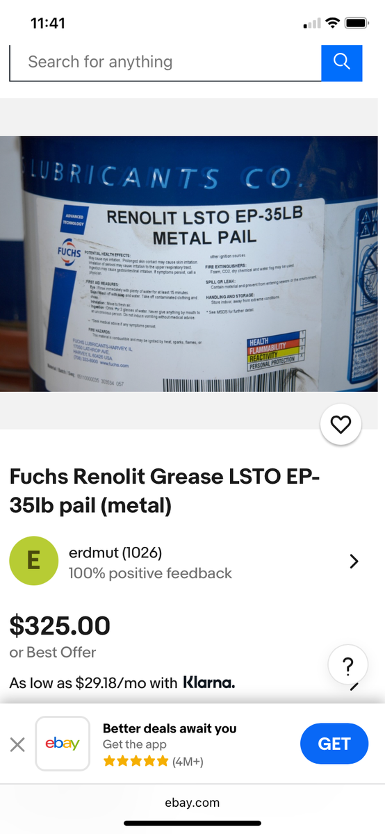 4 each new 5 gallon pails Fush Renolit Lsto-ep35 Lubricant