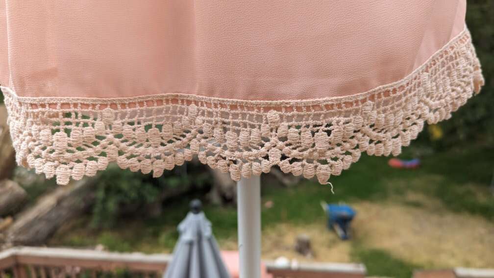 In good condition, there is one small mark on the back. (see photos.) Otherwise perfect. no holes, snags, rips, or other marks.