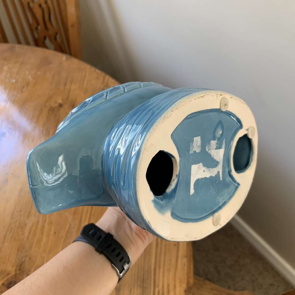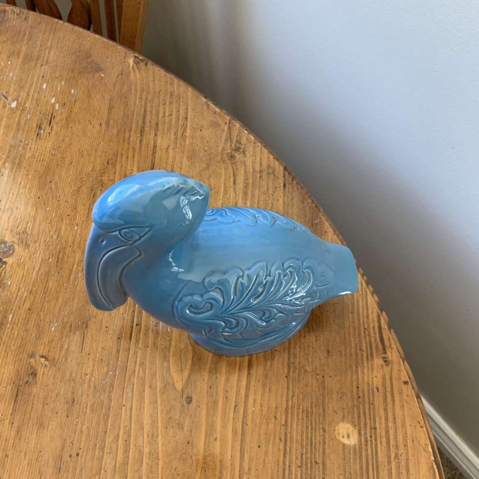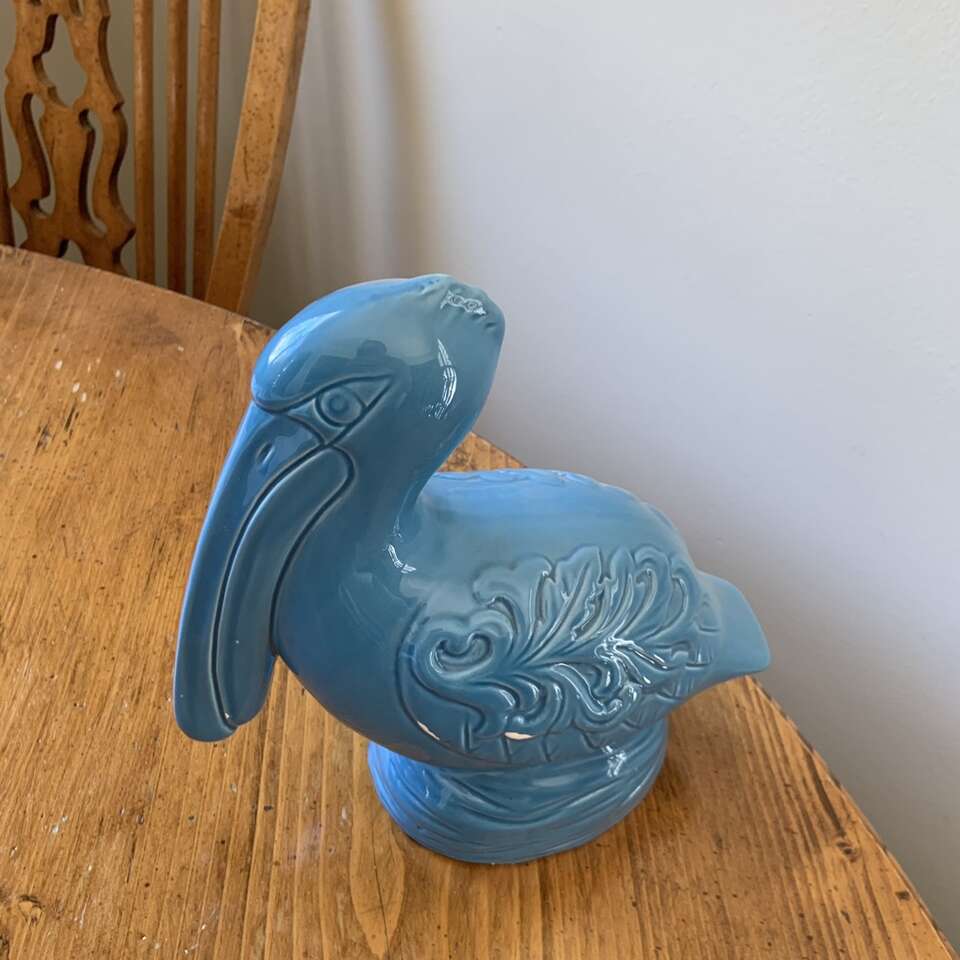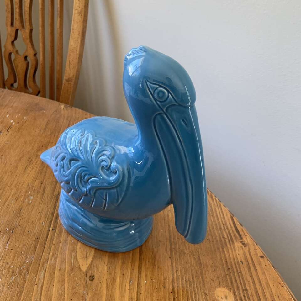 Blue Ceramic Sitting Pelican Figurine There are a few chips out of it (see photos)
