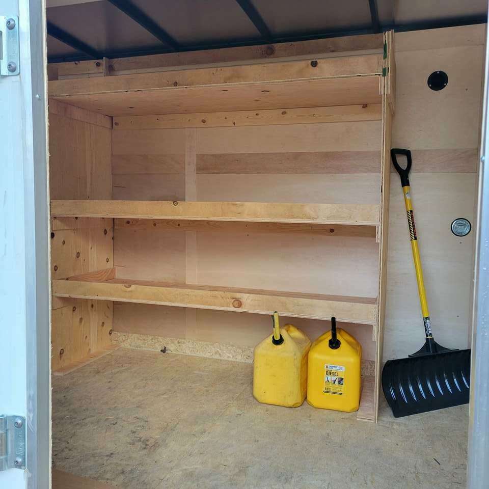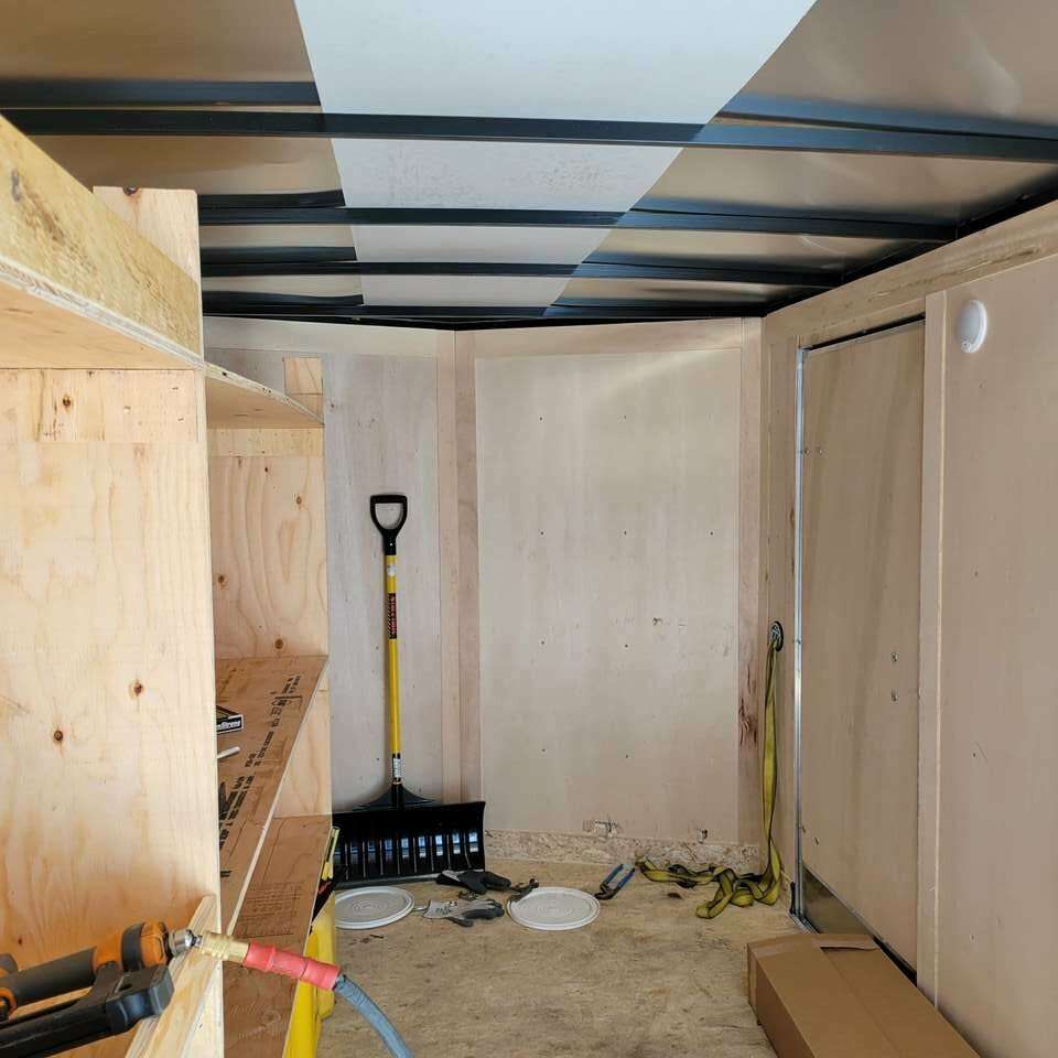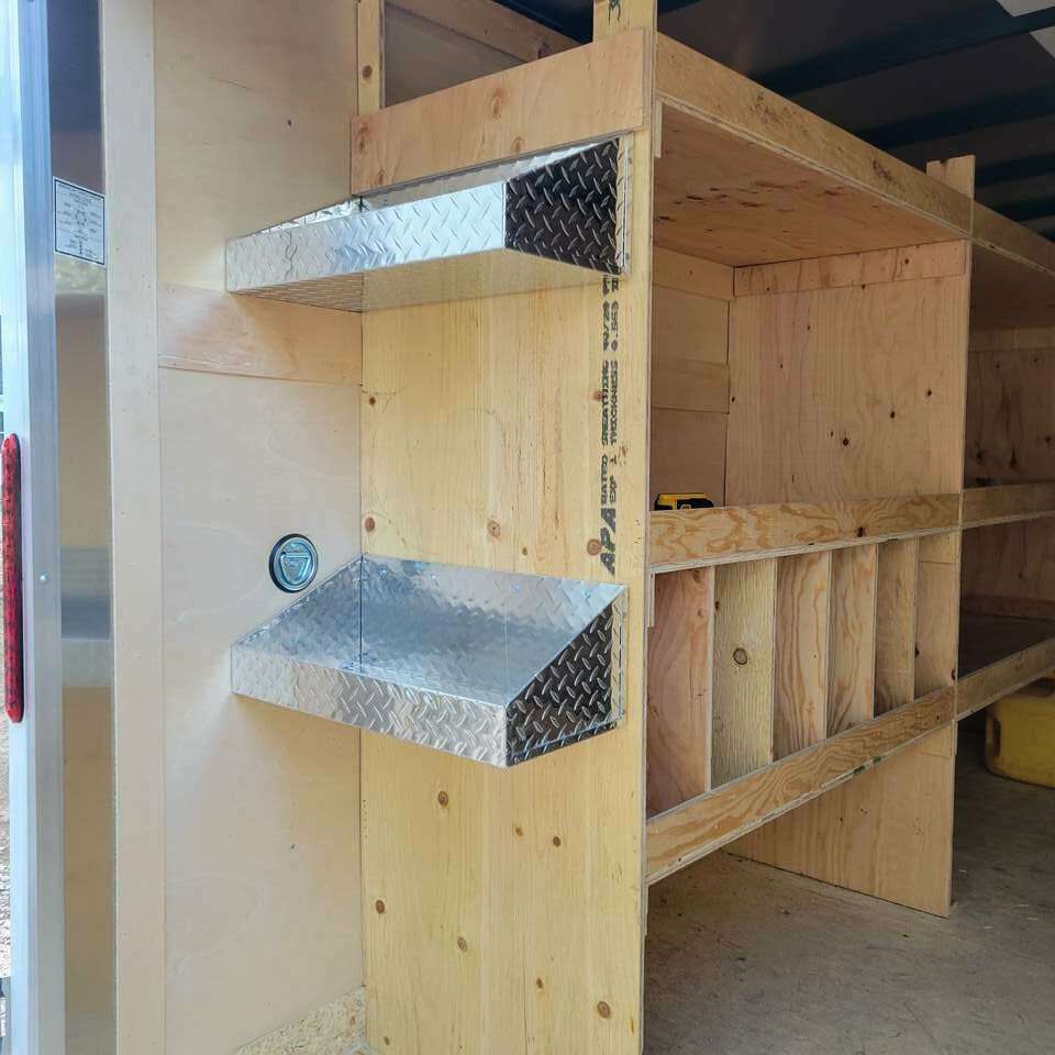 We do full shelving and hanging systems for your trailer. Custom work so price depends on what you need.