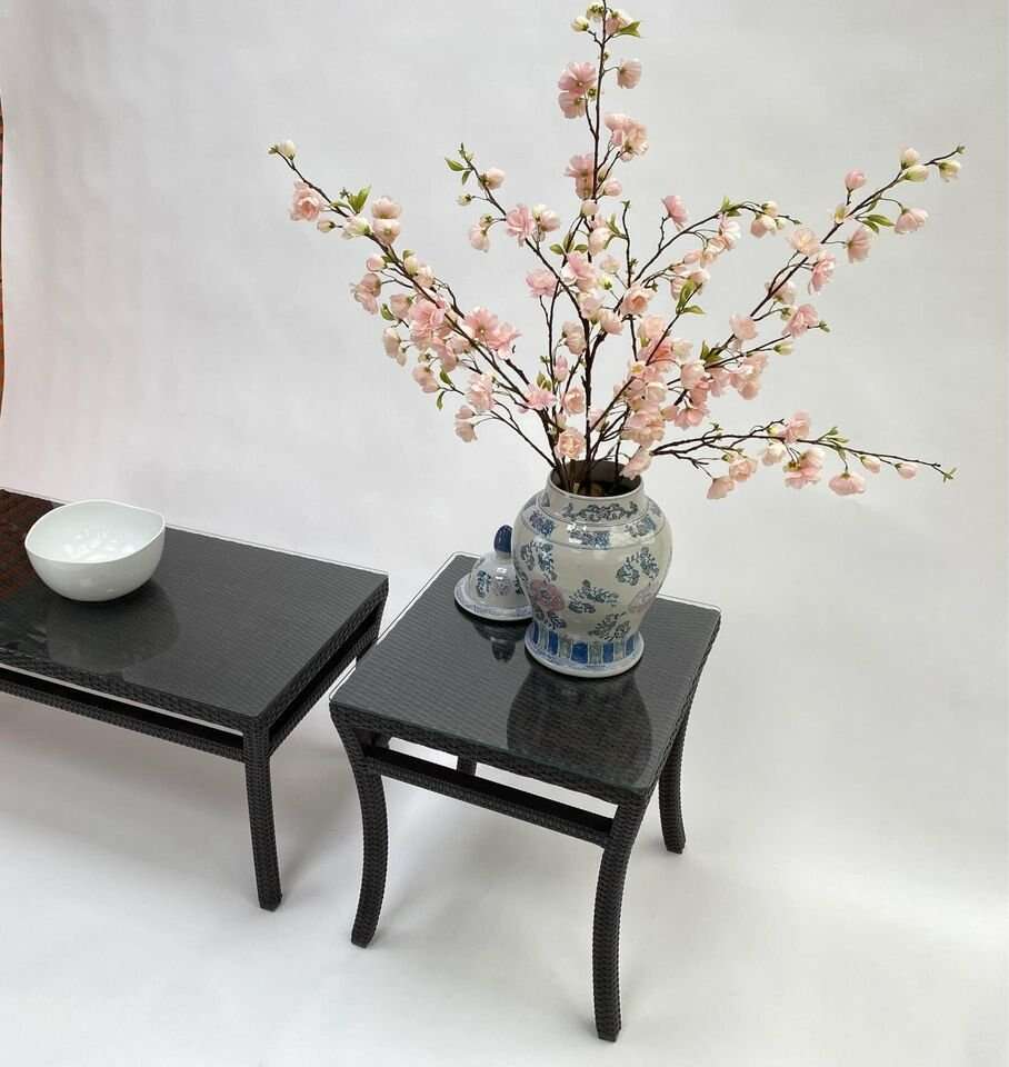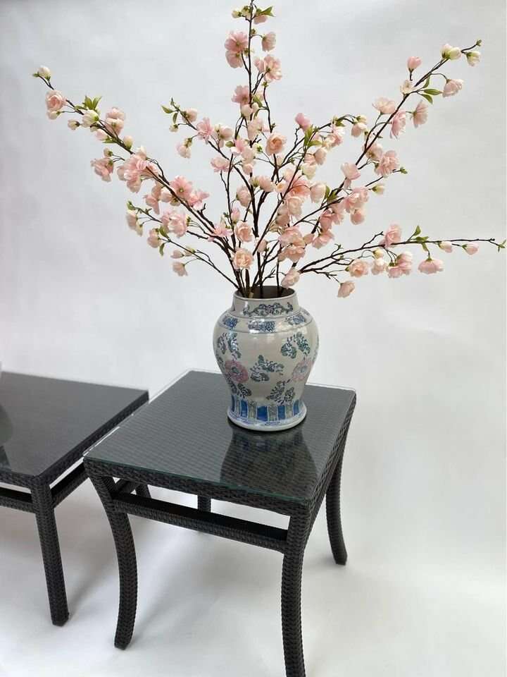 It’s a very well made set and would pare nicely with items from Pottery Barn or Serena and Lilly or Restoration Hardware. It pairs nicely with a chinoiserie accent piece. $75 is for both tables together.