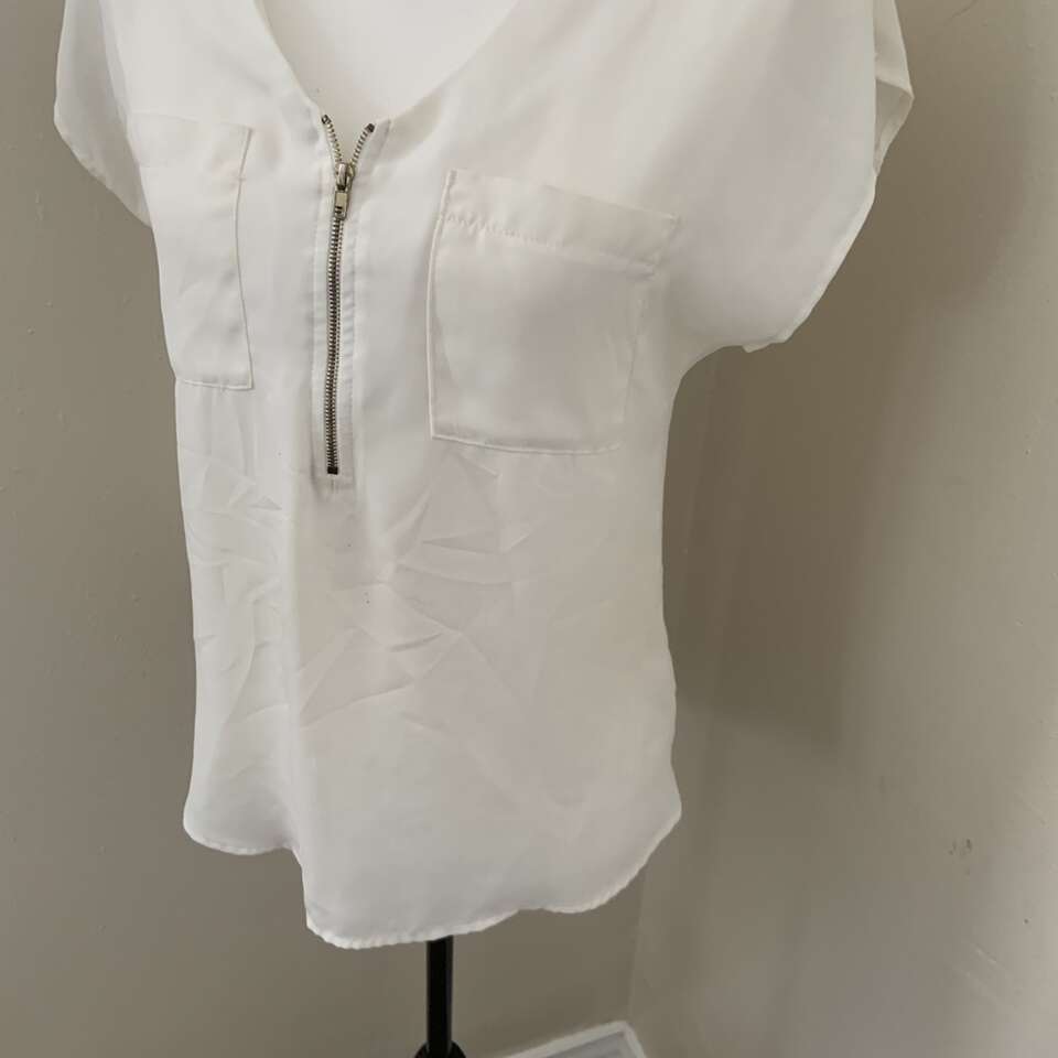DownEast Off White Sheer Top 1/4 Gold Zip Size S