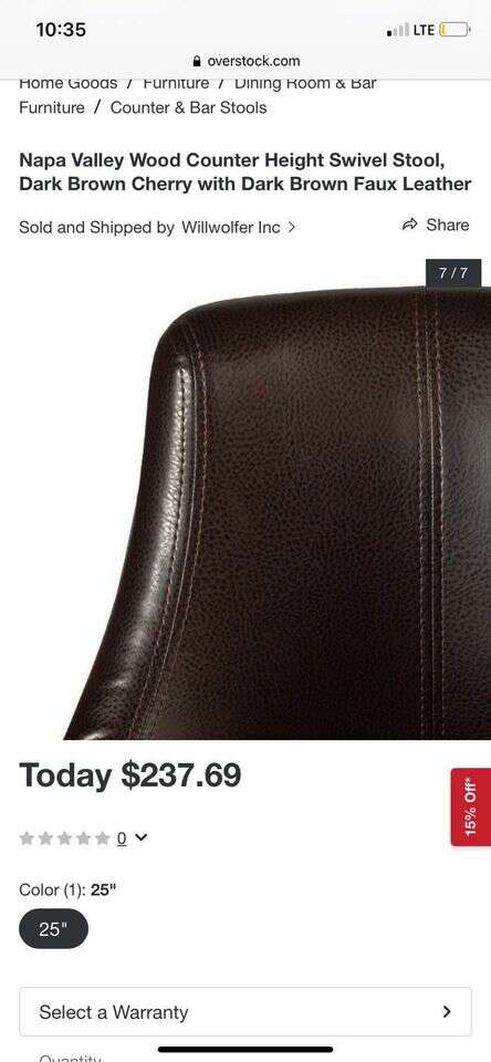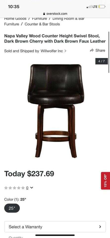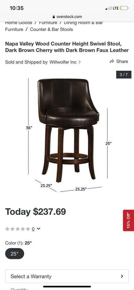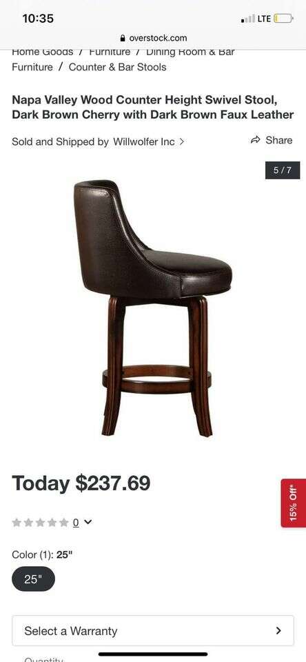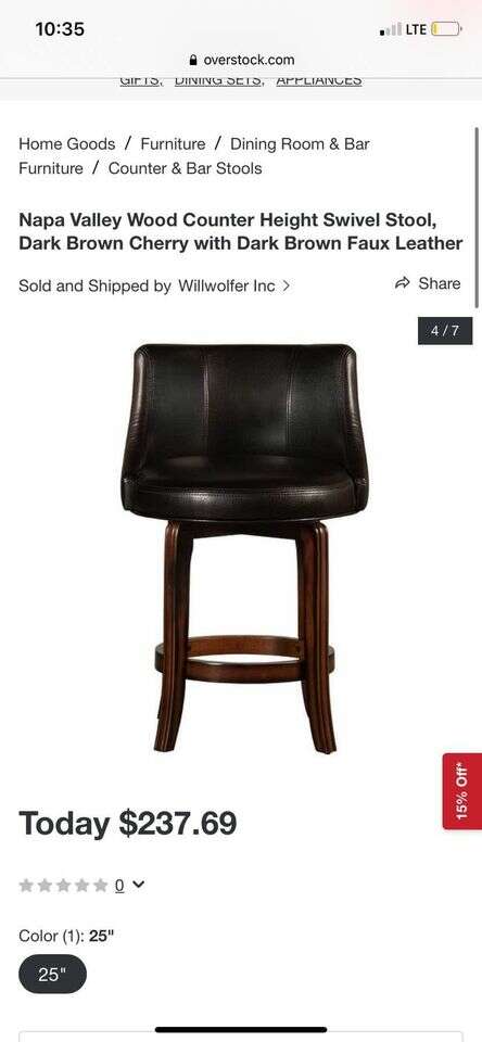 VenmoBasically **brand new** never used dark brown swivel stool. Dimensions are in pictures. Very large comfortable seat.