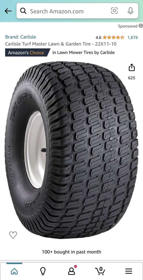 Description- 22X11–10 Turf Master lawn and garden tire. ONLY ONE AVAILABLE. See photos for more product information and specifications.
