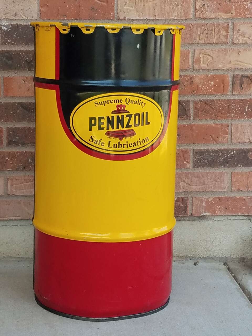 Steel open face drums. Make awesome garage man cave garbage.
