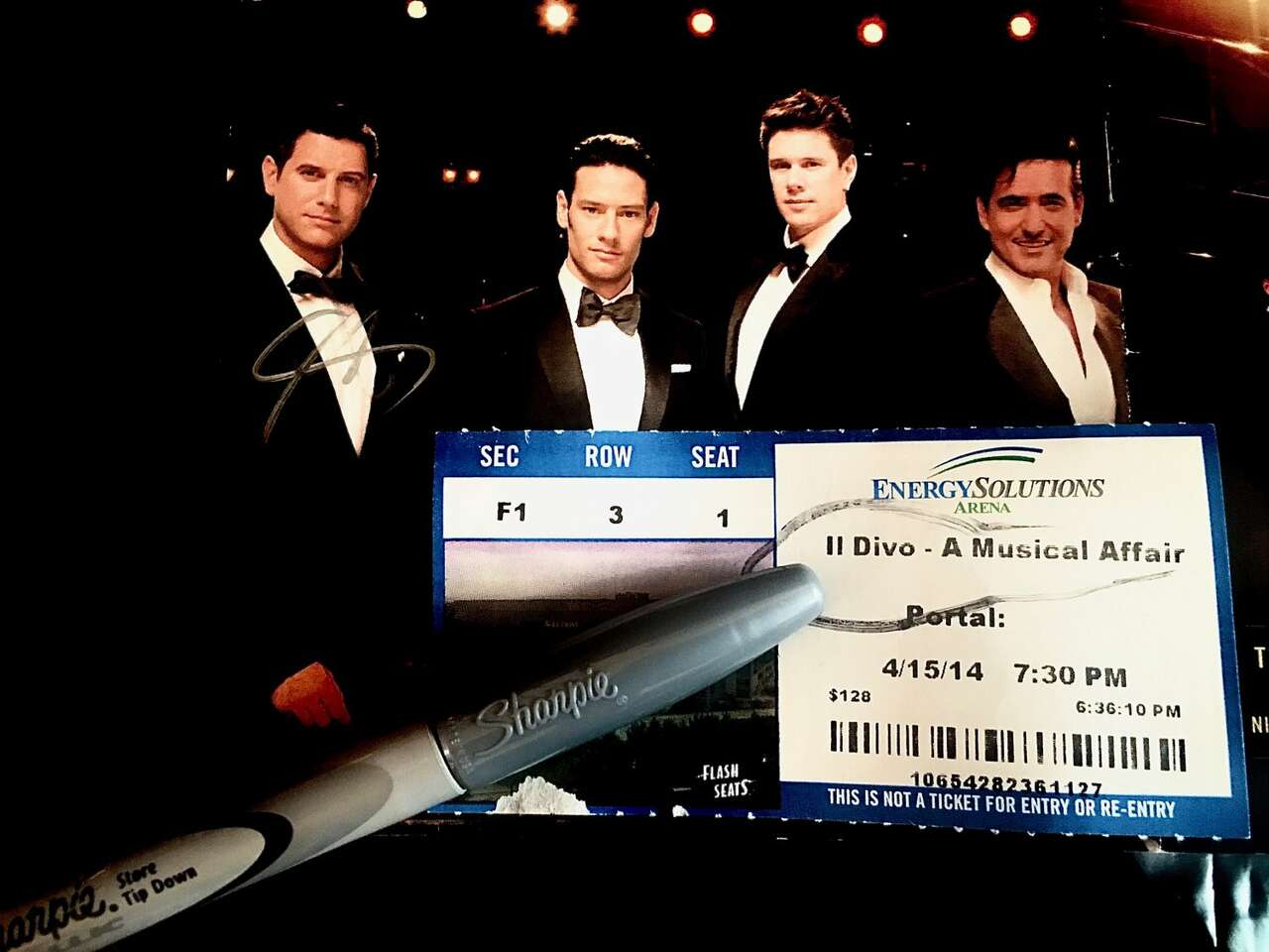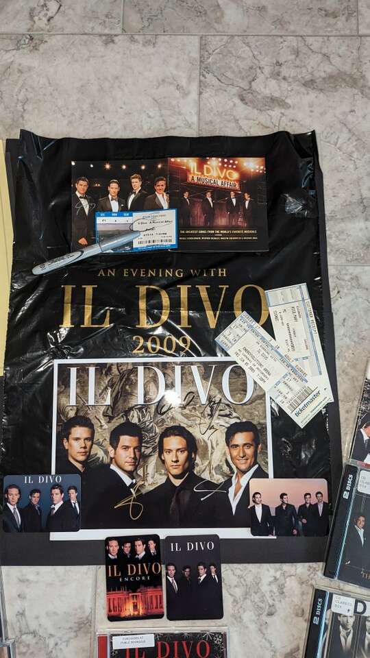 2 Il Divo concert entrance papers, and a black plastic An Evening With Il Divo 2009 shopping bag.
