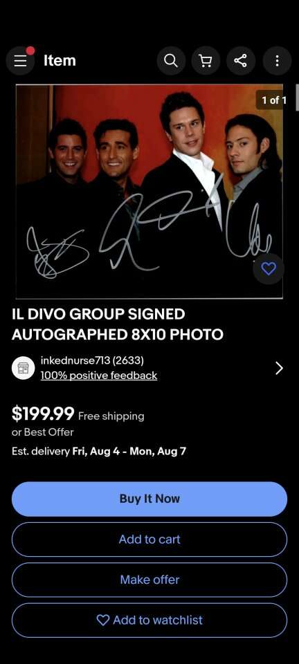 Autographed photo of Il Divo: Urs Buhler, David Miller, Sebastien Izambard and the late Carlos Marin.