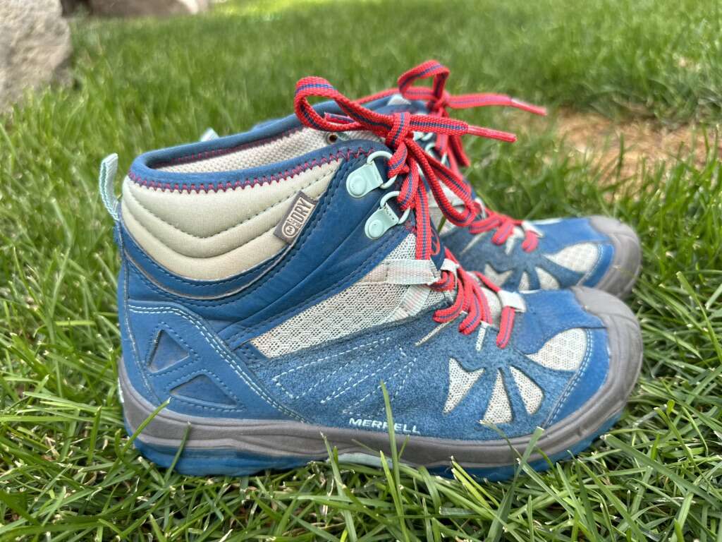 Merrell youth size 4 blue/seafoam green leather and mesh, waterproof mid hiking boots. These are in excellent condition. See photos for details. I take cash or Venmo. Text is best. 801-201-4446.