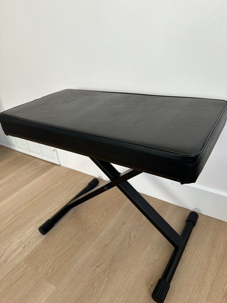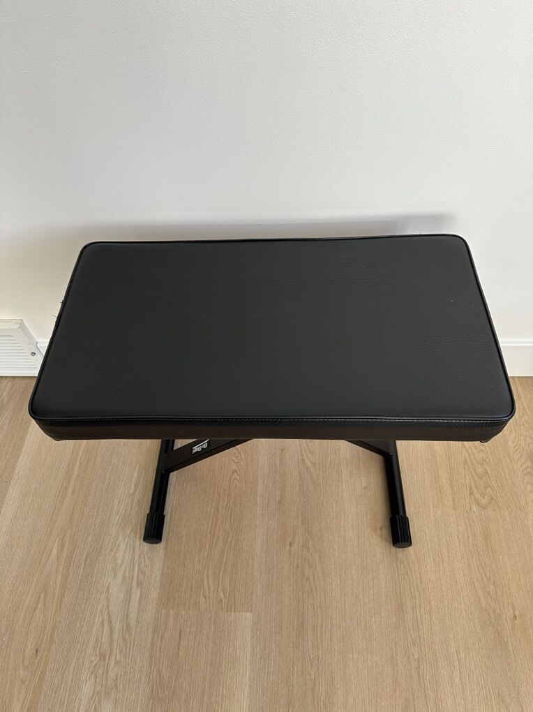 All-weldedColor: Black Powder Coat Finish Top-of-the-line folding keyboard bench Folds flat for travel