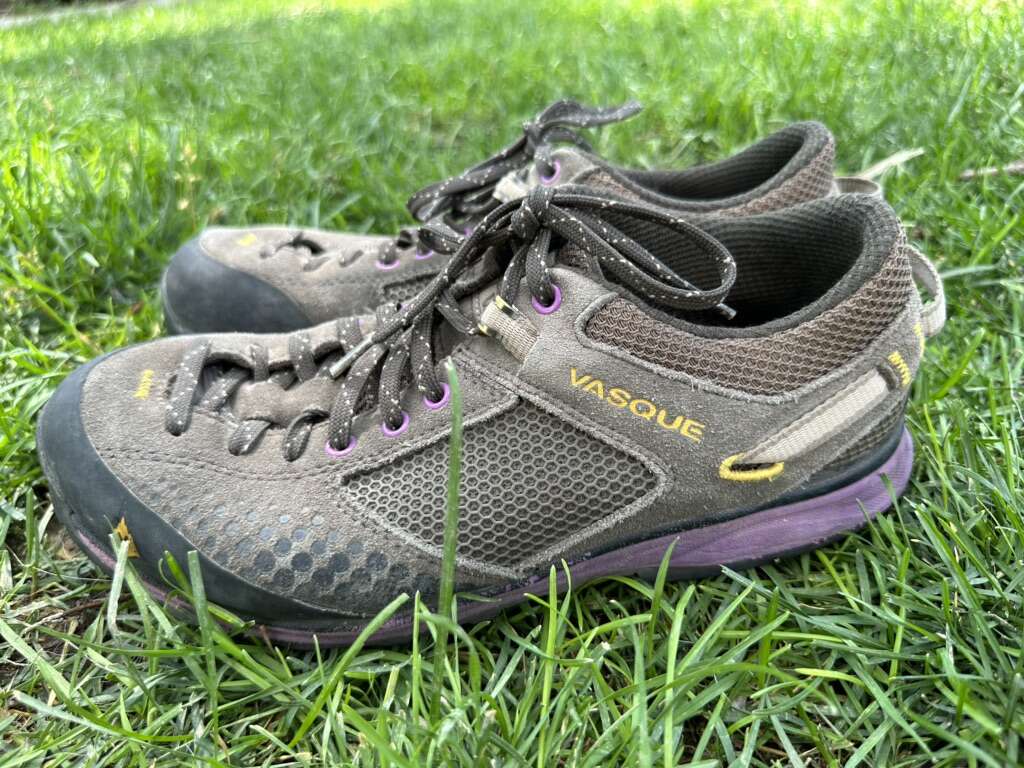 Vasque women’s size 9.5 gray mesh and leather with purple trim hiking or trail running shoes. These are in great condition. See photos for details. I take cash or Venmo. Text is best. 801-201-4446.