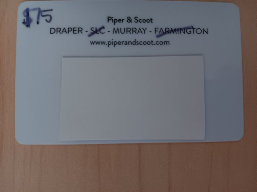 Venmo*PLEASE READ DETAILS Never used Never expires Piper & Scoot gift card $75 card for only $60, use online or instore (locations Murray and Draper). You can usually get free shipping on the website & frequently extra discount percentages. Women, teen, and maternity clothes & shoes.