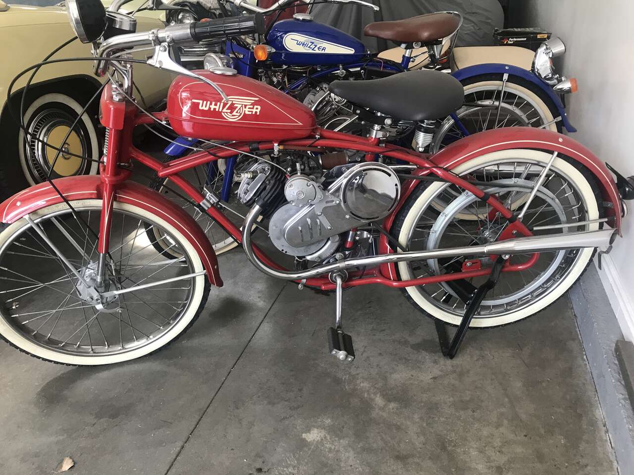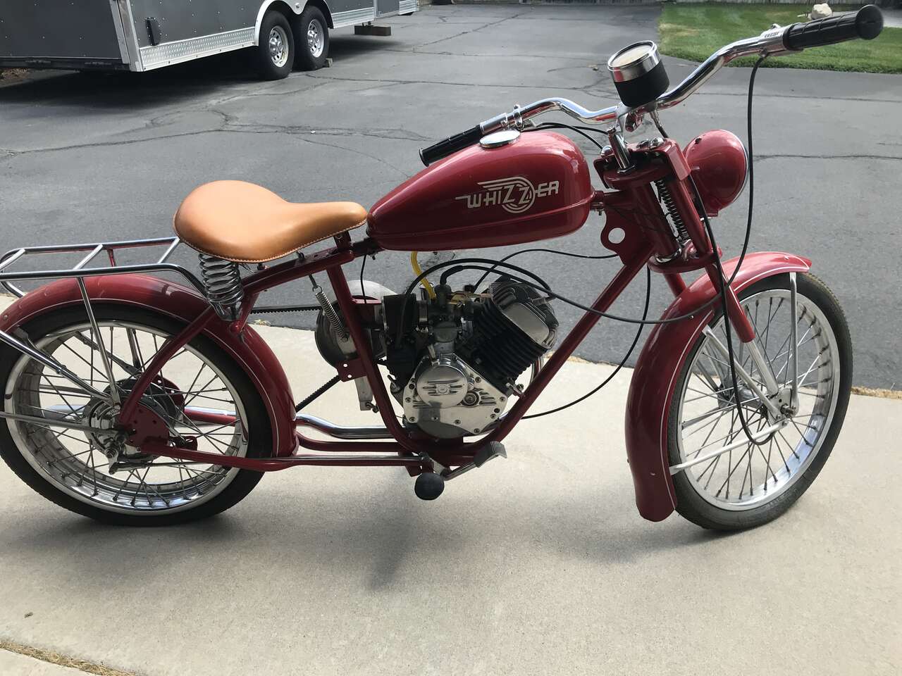 1948 Whizzer Sportsman with kickstart, 1 mile on restoration. Chrome rims, exhaust, handlebars. Front and rear lights. Coil front forks. Spedomoter shows 1 mile. $5,000. Call 801-573-8123.