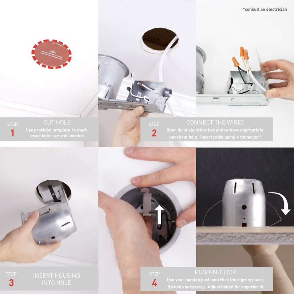 Description- 4-PACK of 3” can lights with LED spot swivel light in 3000 K soft white. See photos for more product information and specifications.