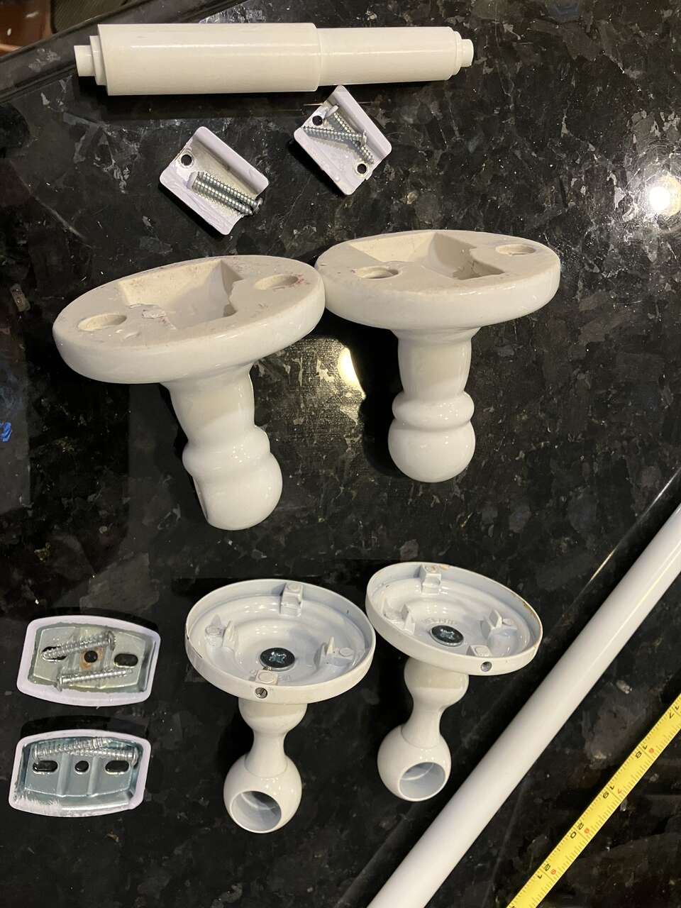 VenmoTOWEL BAR with MODERN RETRO, POLISHED VINTAGE SNOW WHITE METAL post holder brackets and metal hardware supports. 24 inch white metal bar. 2.75 inch diameter metal supports. Current retail value $50+tax. ONLY $15. ALSO White Ceramic Toilet Paper Dispenser Brackets and plastic spring-action post. 7.5 inches Outside Brackets dimention. Only $15. Both come Complete with all needed hardware. Cash/Venmo. In Sandy. 801-201-5350.