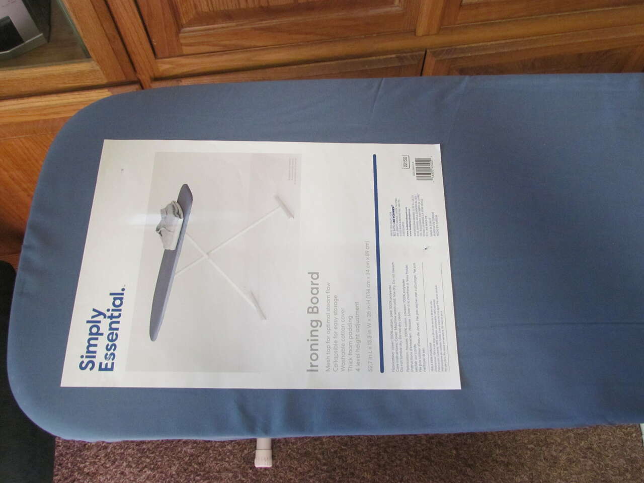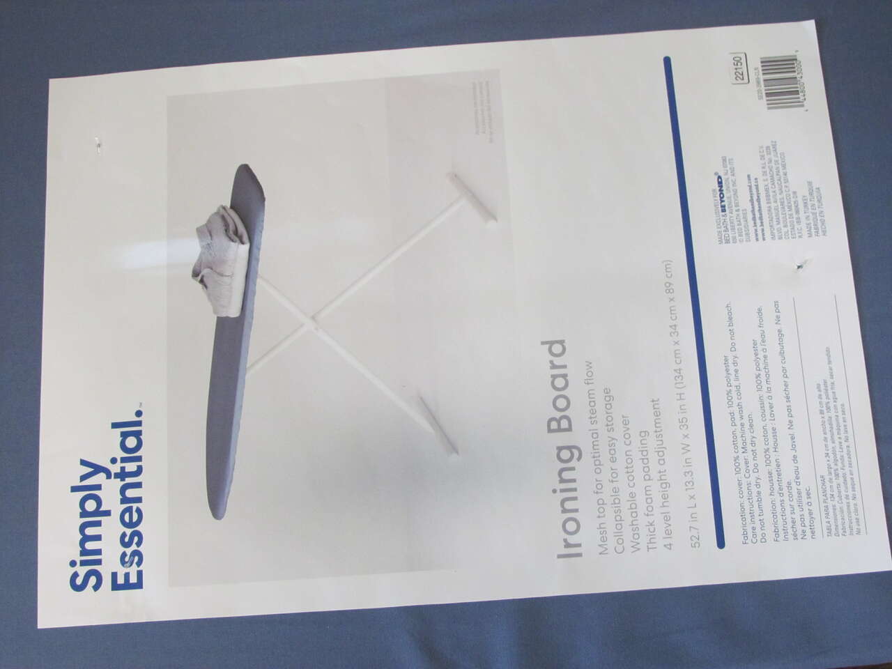 This listing is for a new blue ironing board *COVER* that is on this unstable ironing board. It is plush and very nice! Cover measurements are in the photos on the paper photographed that says: 52.7" Long x 13.3" Wide.