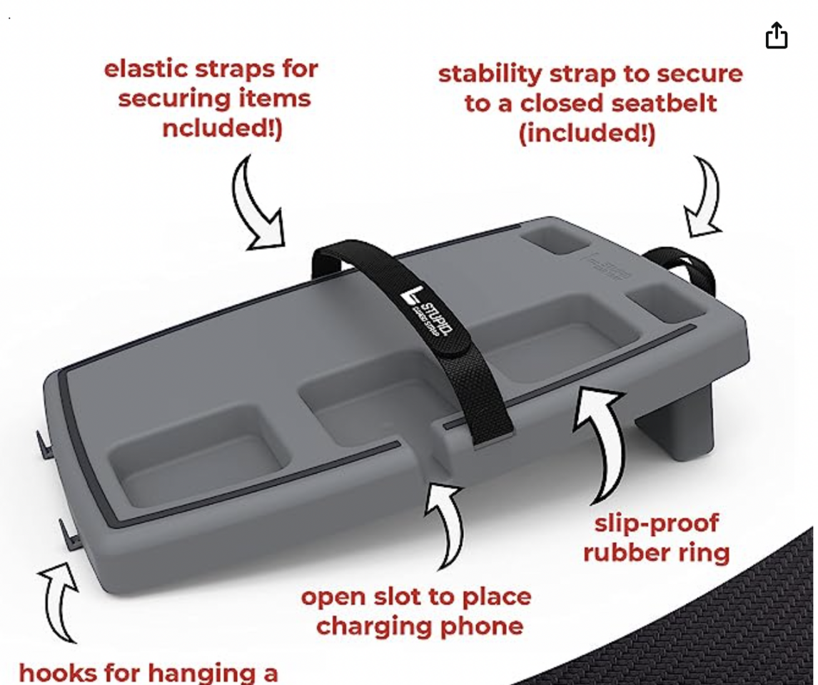 VenmoStupid Car Tray. These are great to have! Use as a table in the seat next to you, or as a lap table for a kid eating a meal in the back seat. Many uses!