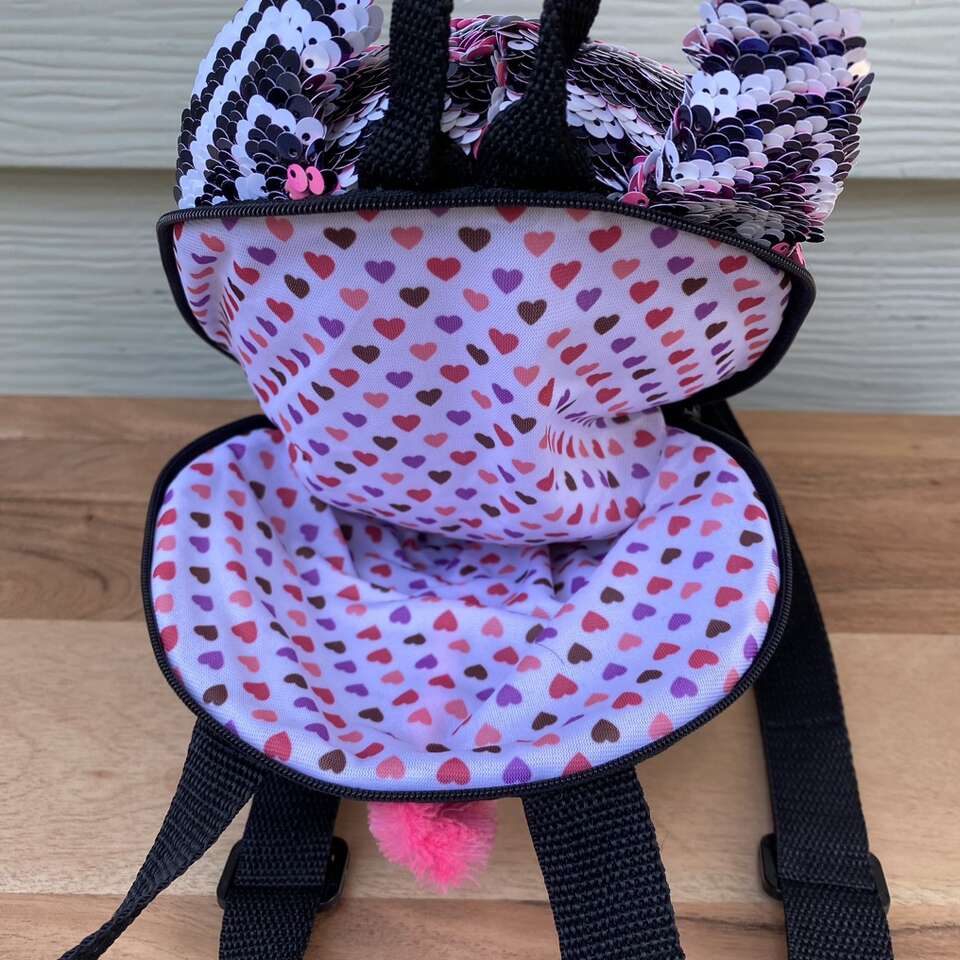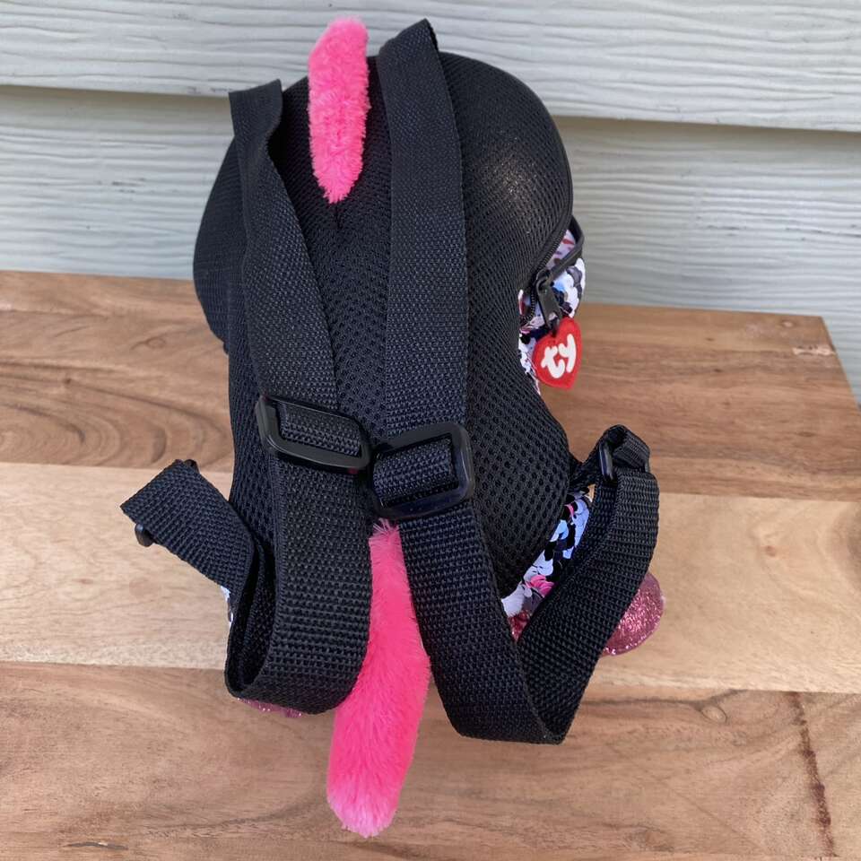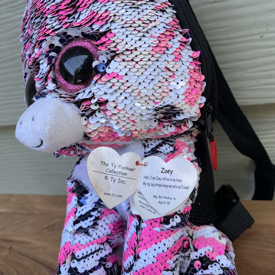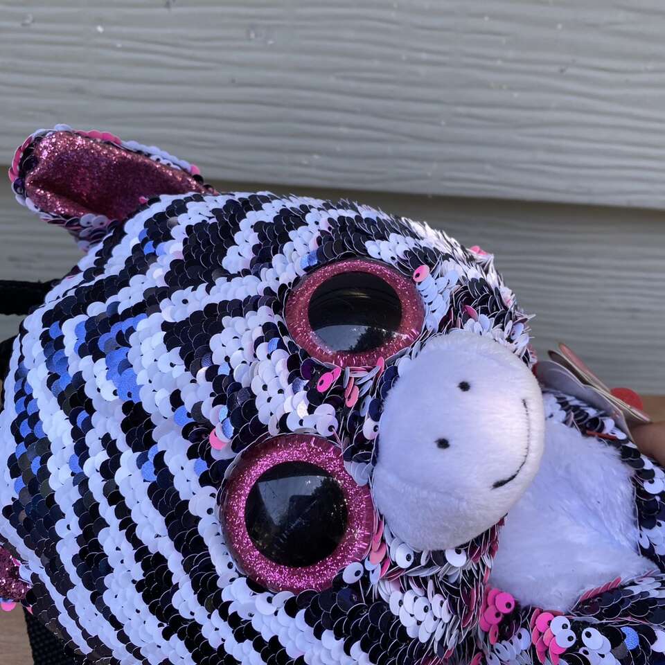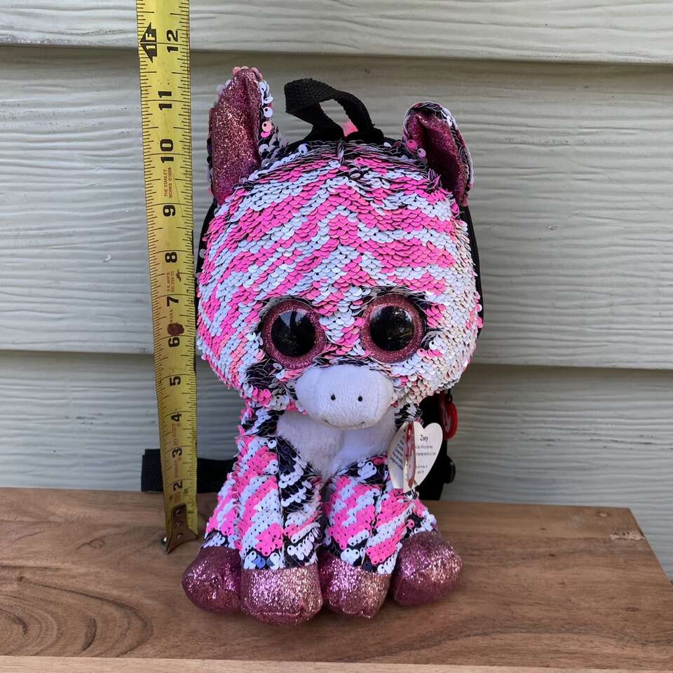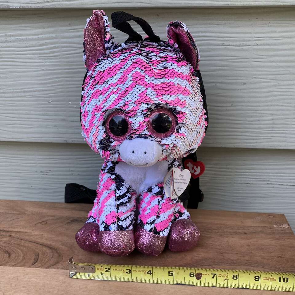 New TY Flippable Sequin Zoey Zip Up Backpack Size: 11.5 x 6 See pictures for approximate measurements Minor Scratches on the Eyes* see picture
